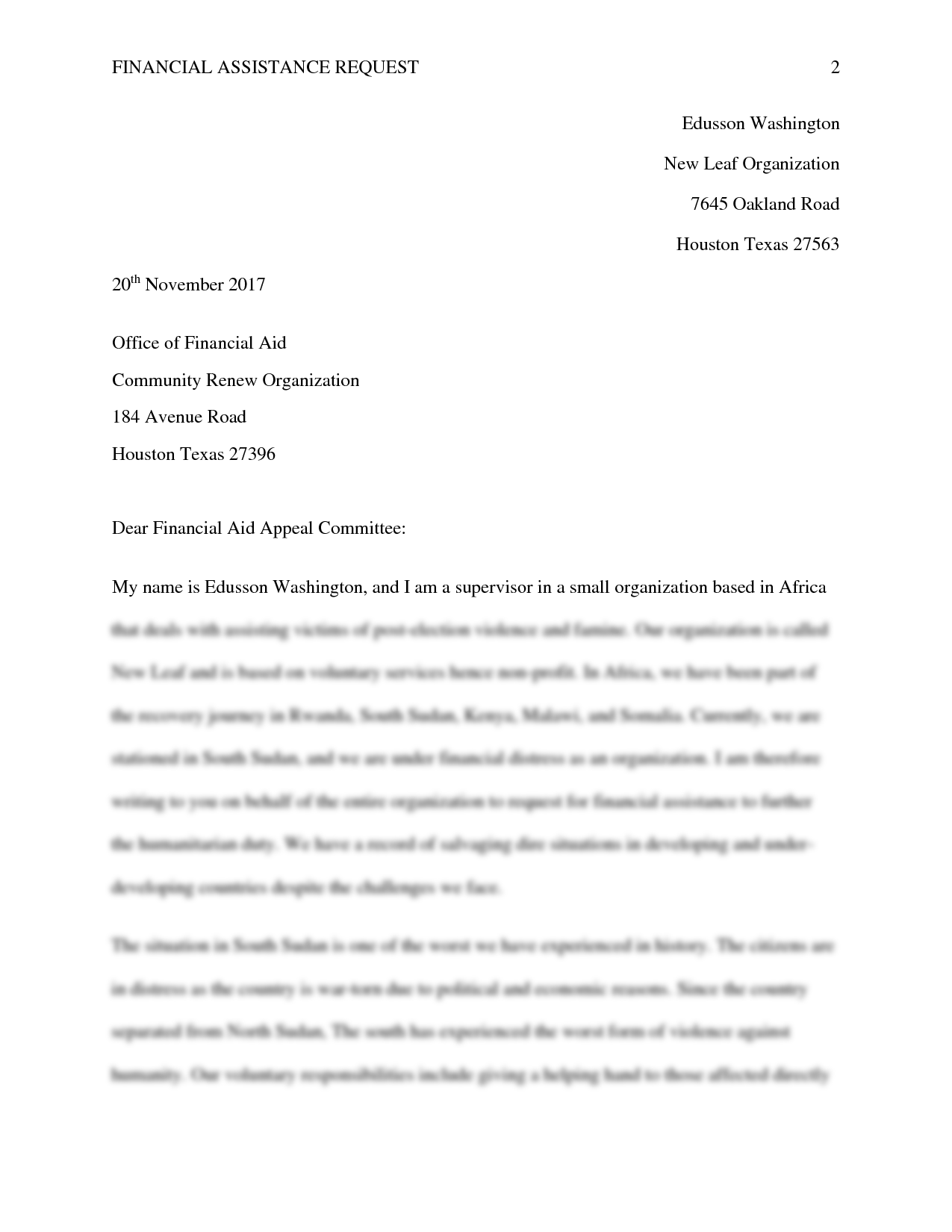 SOLUTION Letter Requesting Financial Assistance Edited 1 Studypool