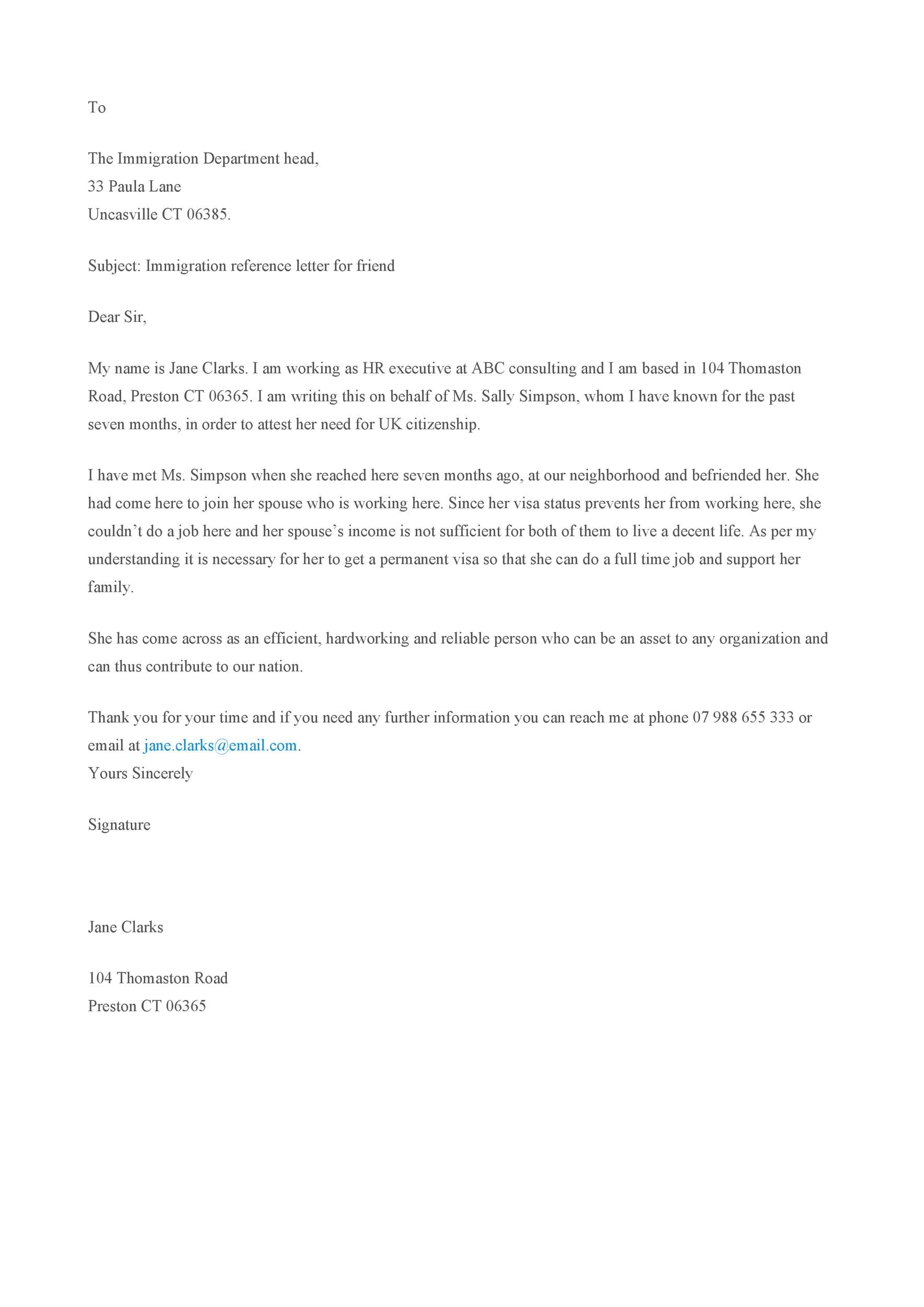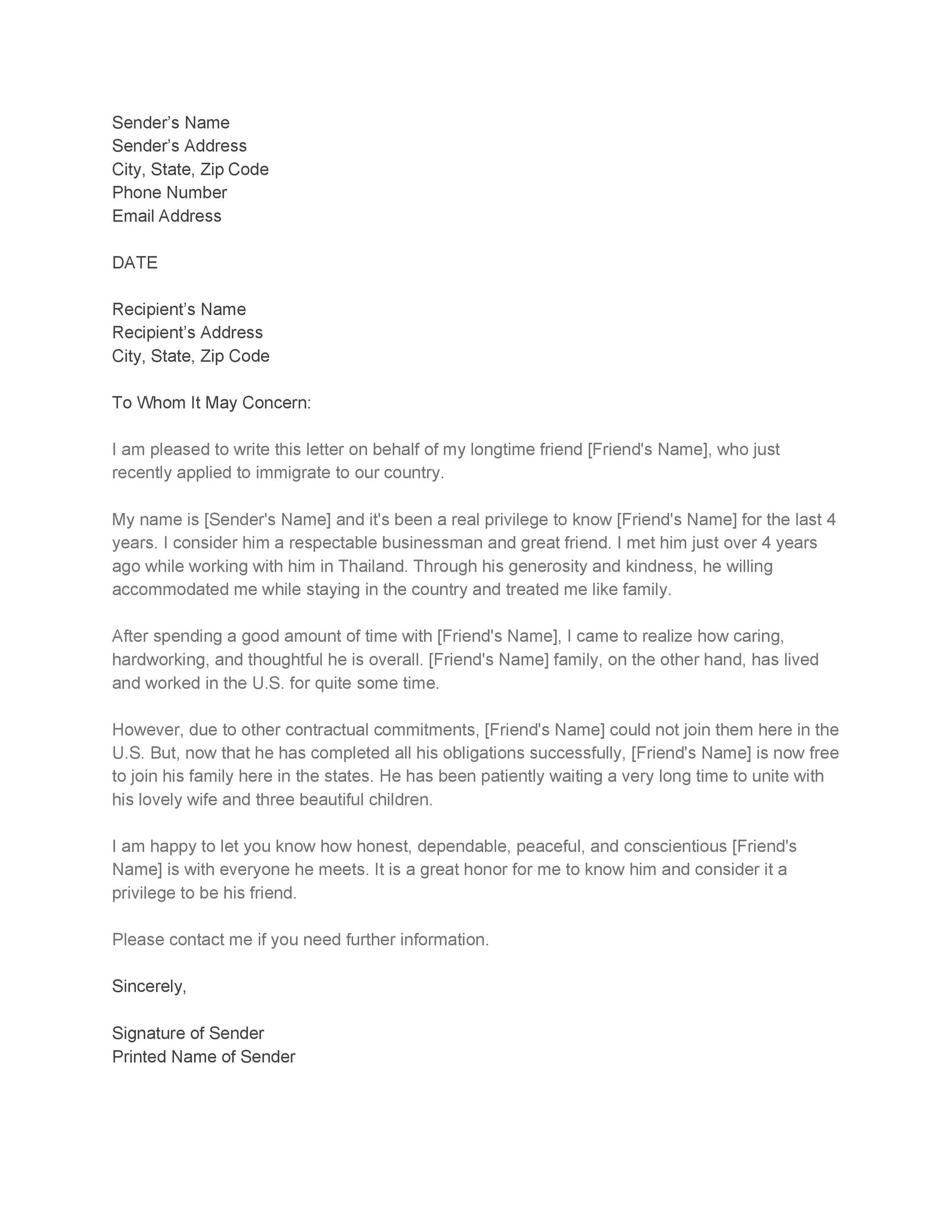 36 Free Immigration Letters Character Reference Letters For Immigration
