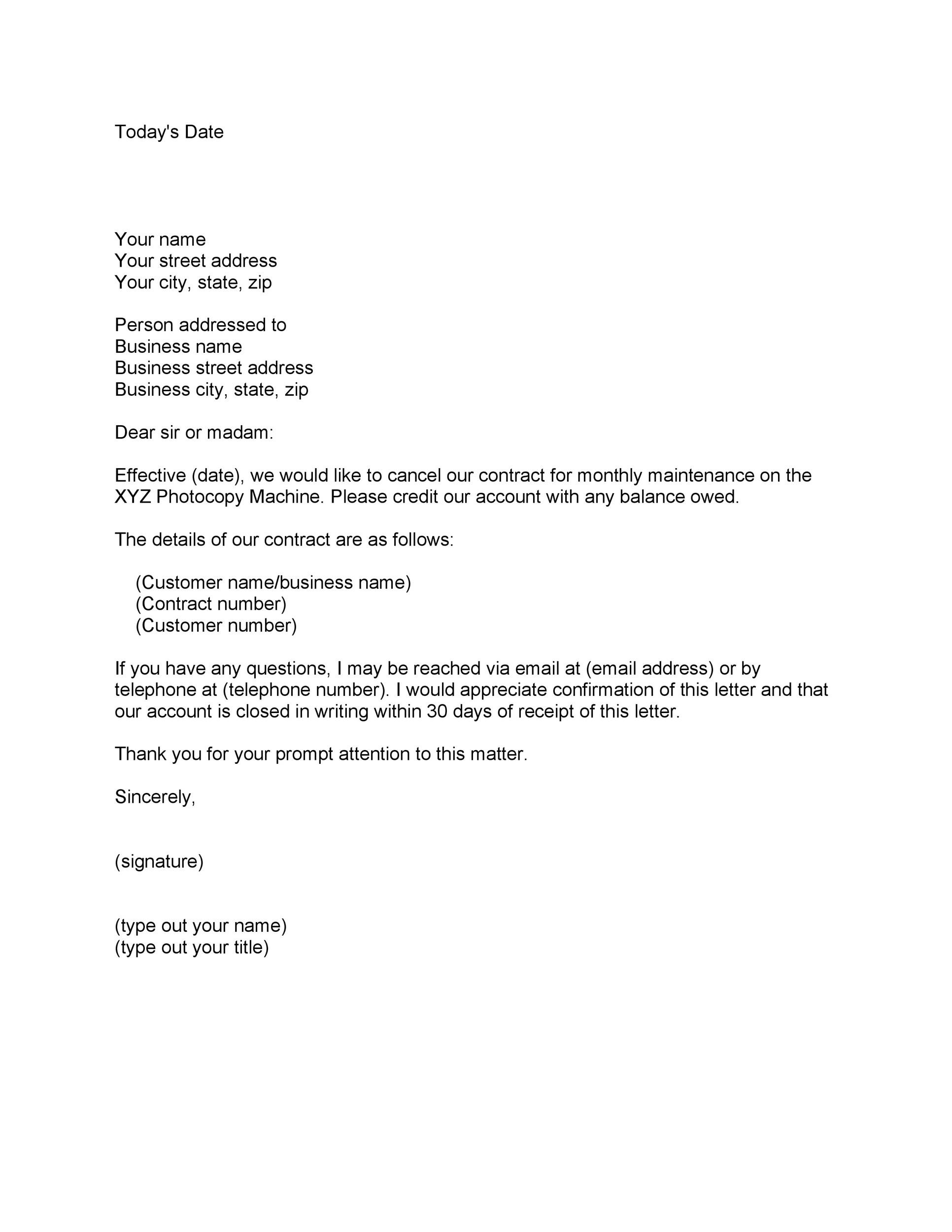 Letter To Cancel Service Agreement