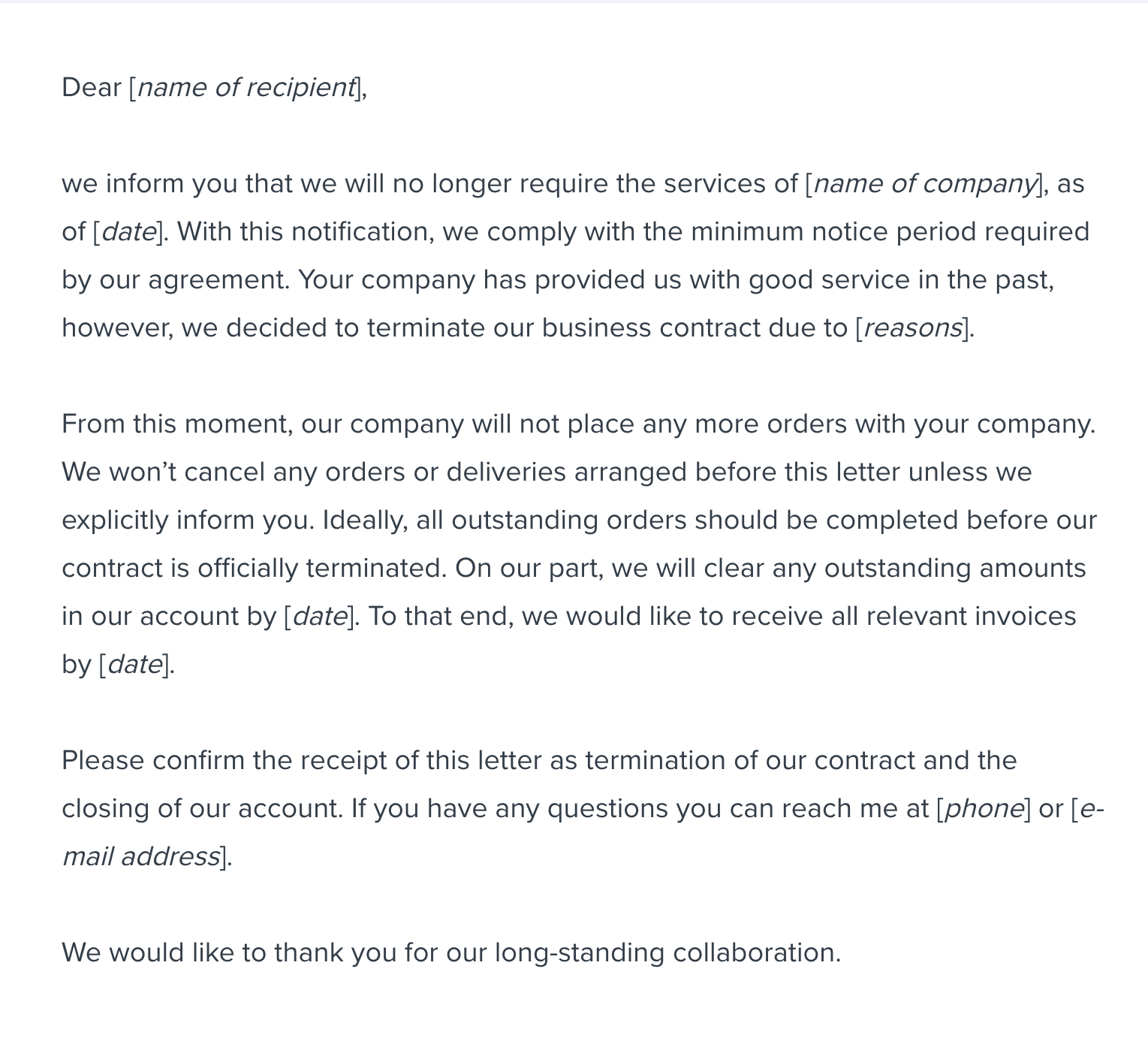 Business Contract Termination Letter Sample Template