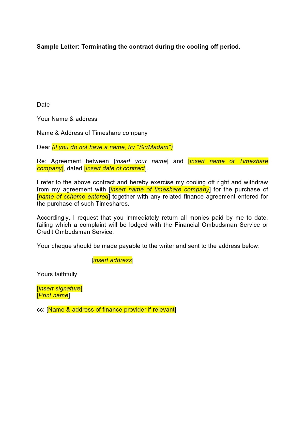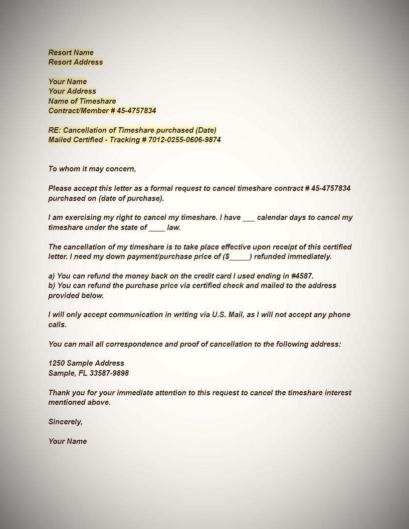 40 Timeshare Cancellation Letter Samples Templates TemplateLab