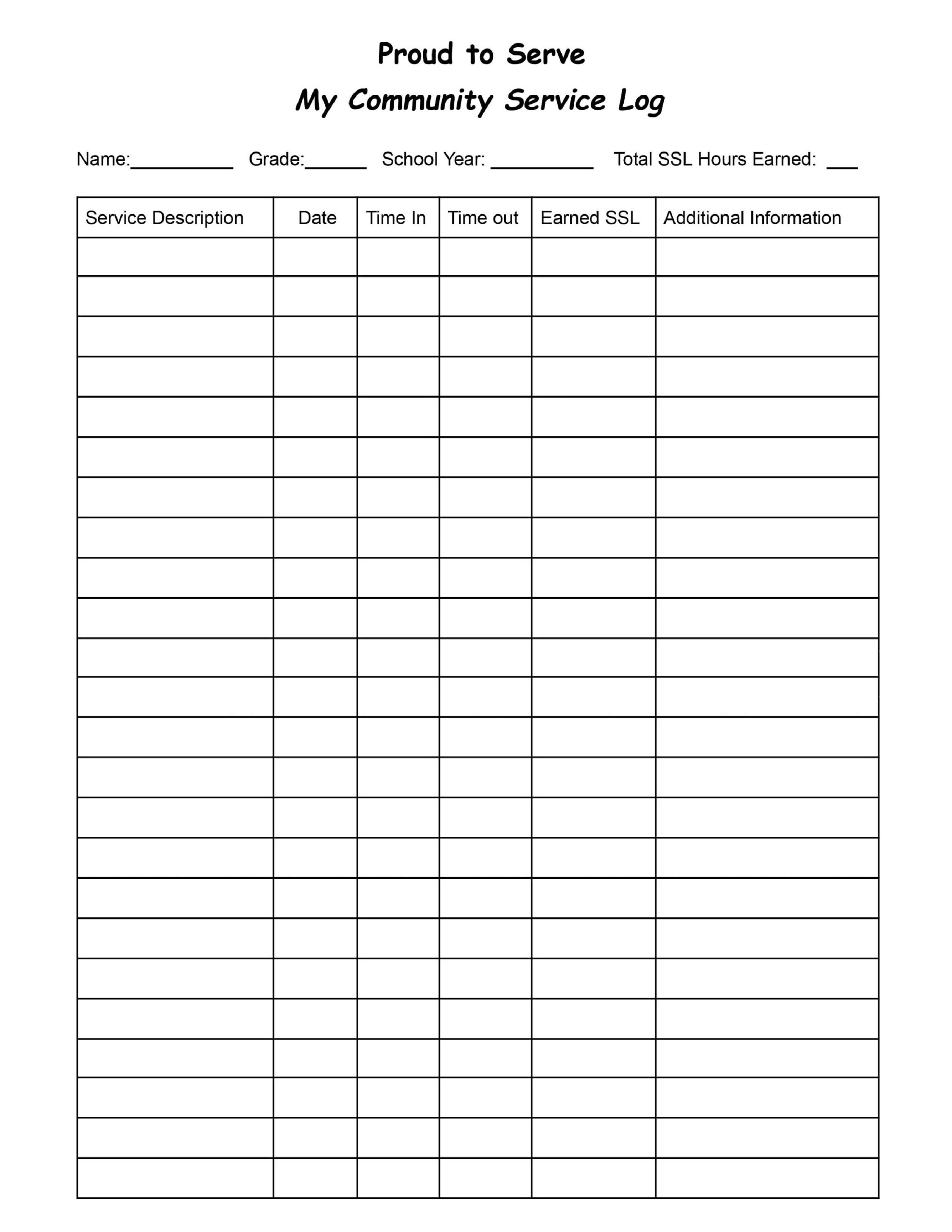 Log For Community Service Hours