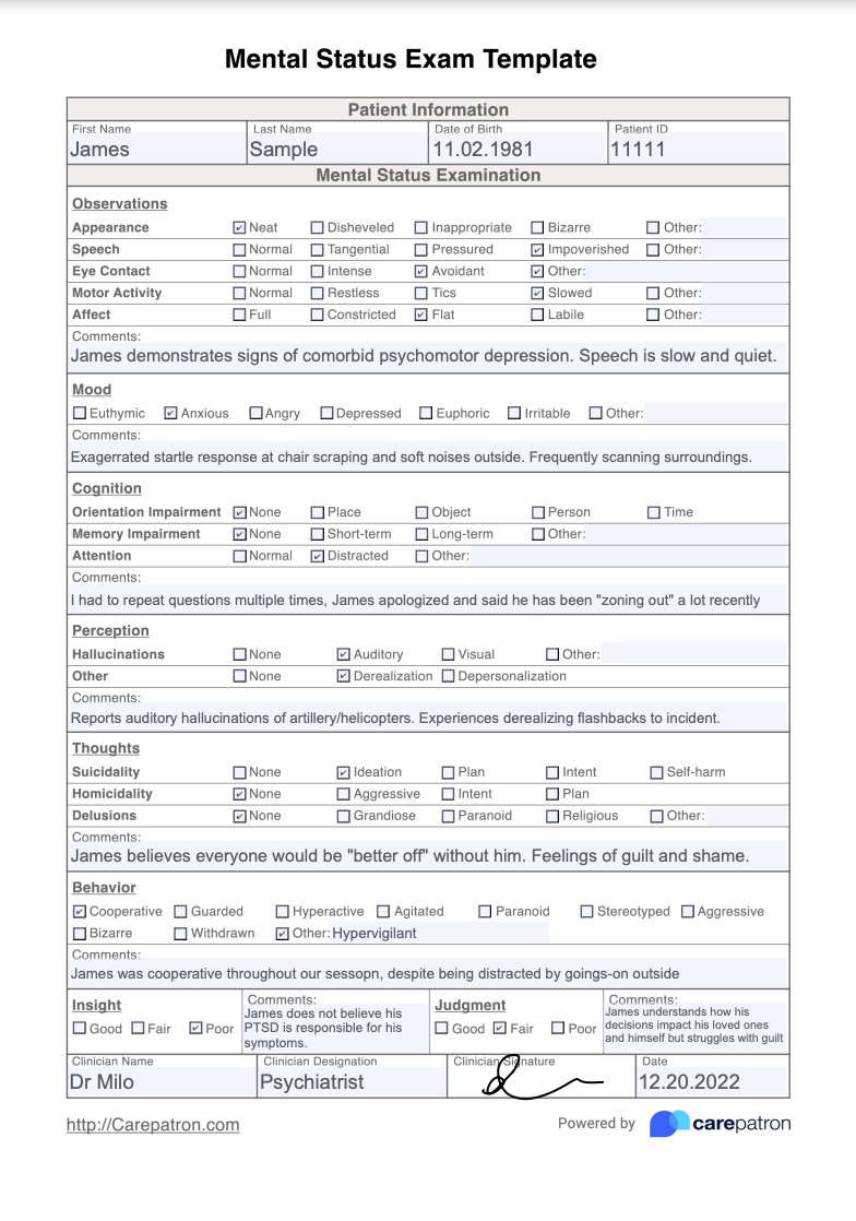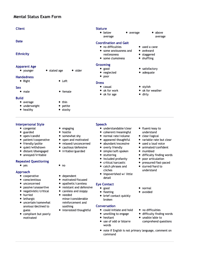 Mental Status Exam Template Fill Online Printable Fillable Blank PdfFiller