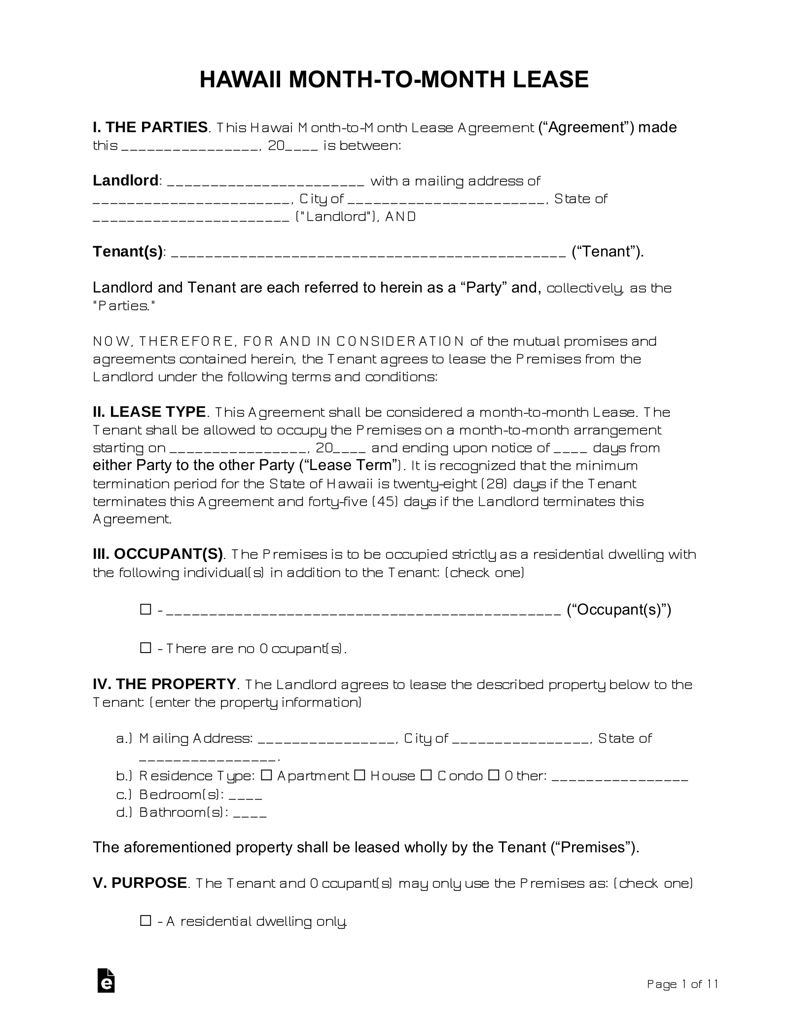 Free Hawaii Month To Month Rental Agreement PDF Word EForms