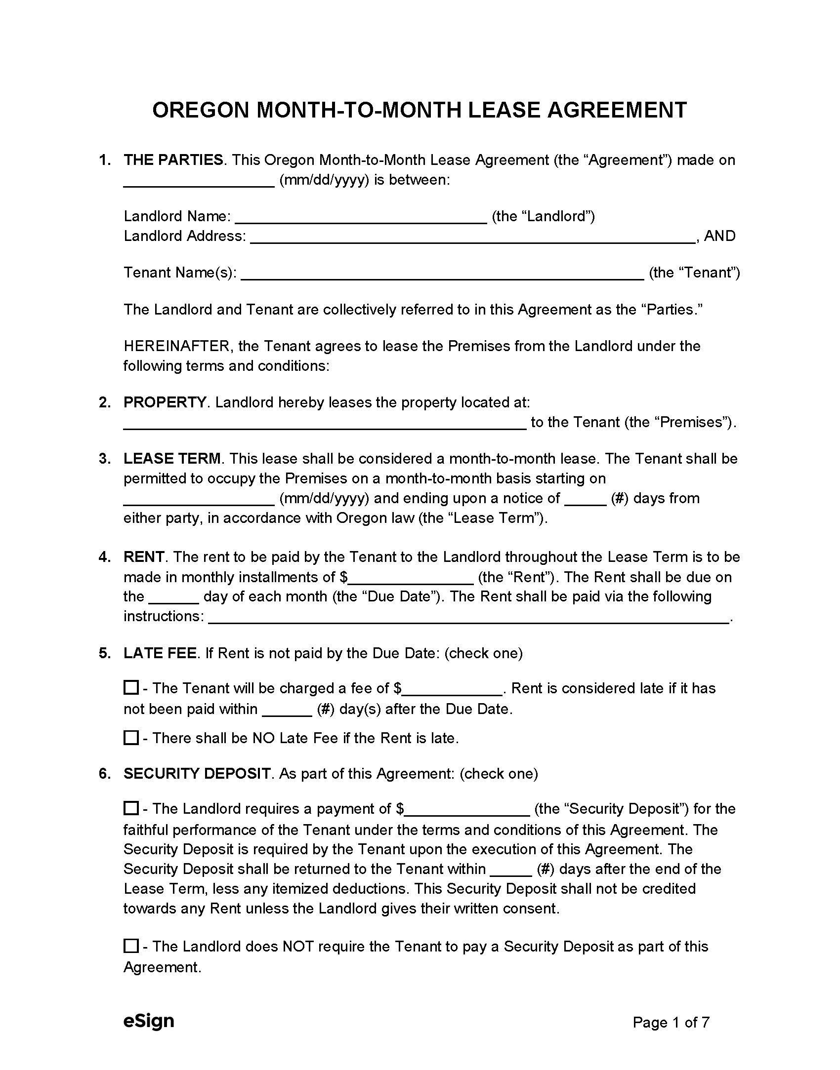 Free Month To Month Rental Agreement Template PDF Word