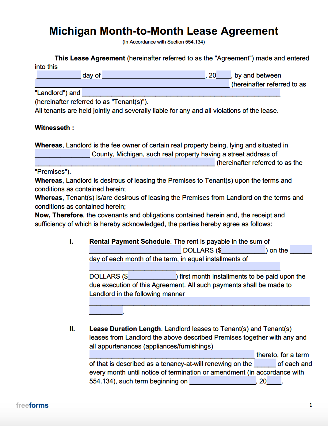 Free Michigan Month To Month Lease Agreement PDF WORD