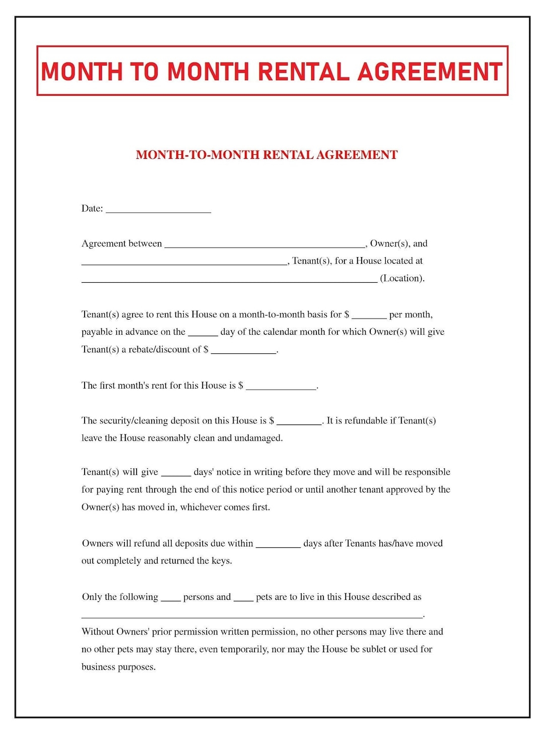Month To Month Rental Agreement Monthly Rental Agreement Month To Month Lease Contract PDF File Available For Instant Download Etsy Denmark