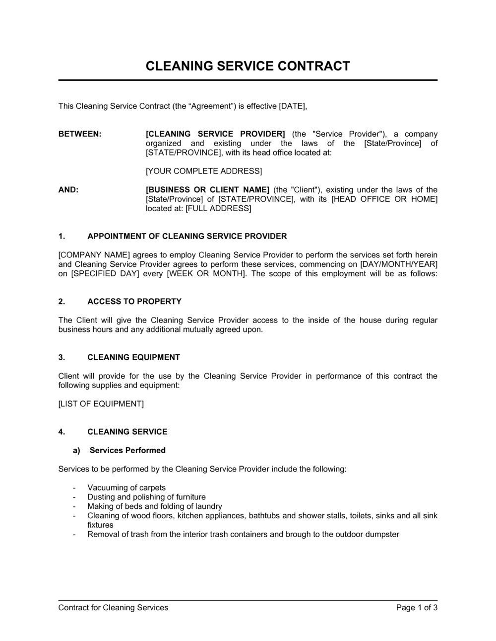 Free Cleaning Service Contract Template PDF Word EForms