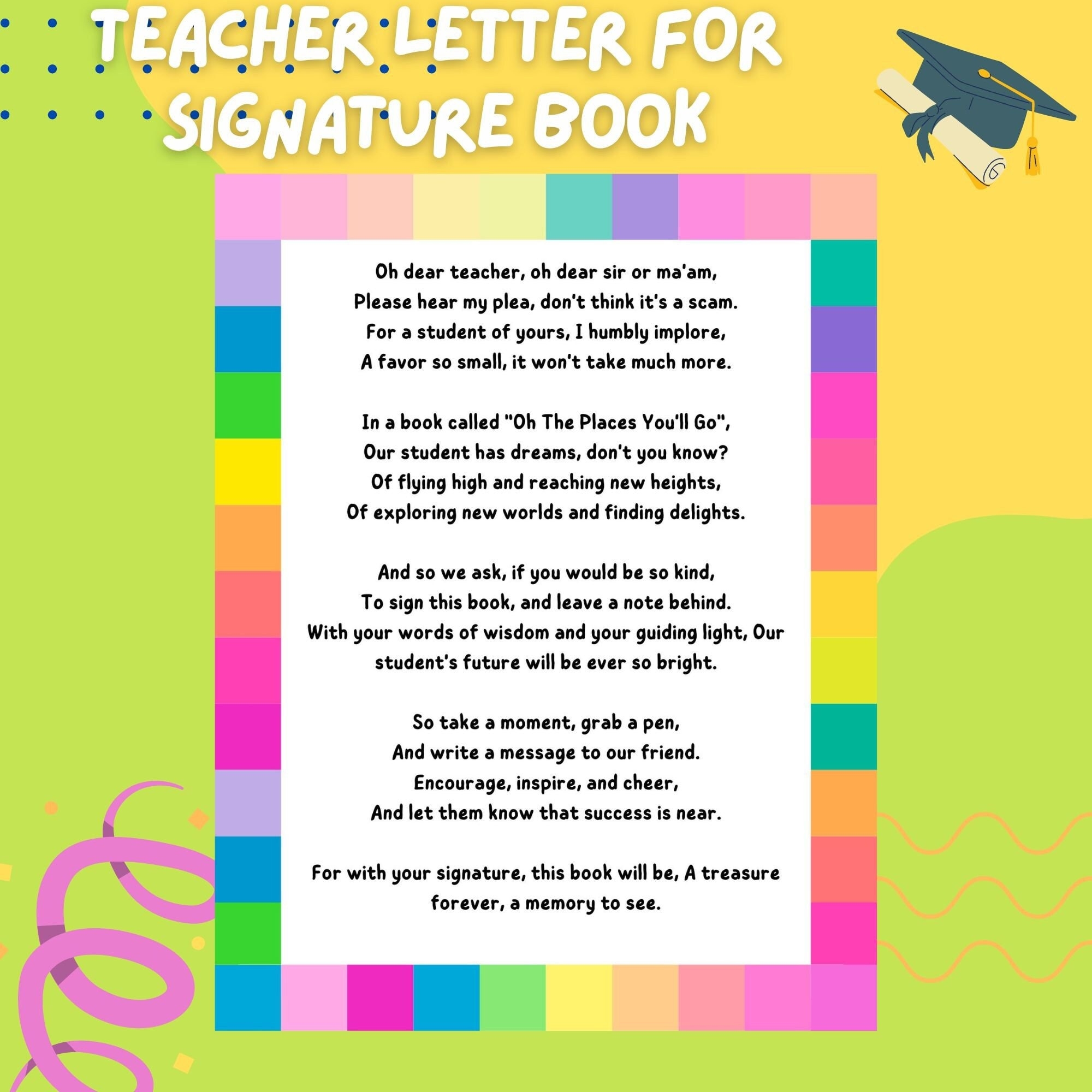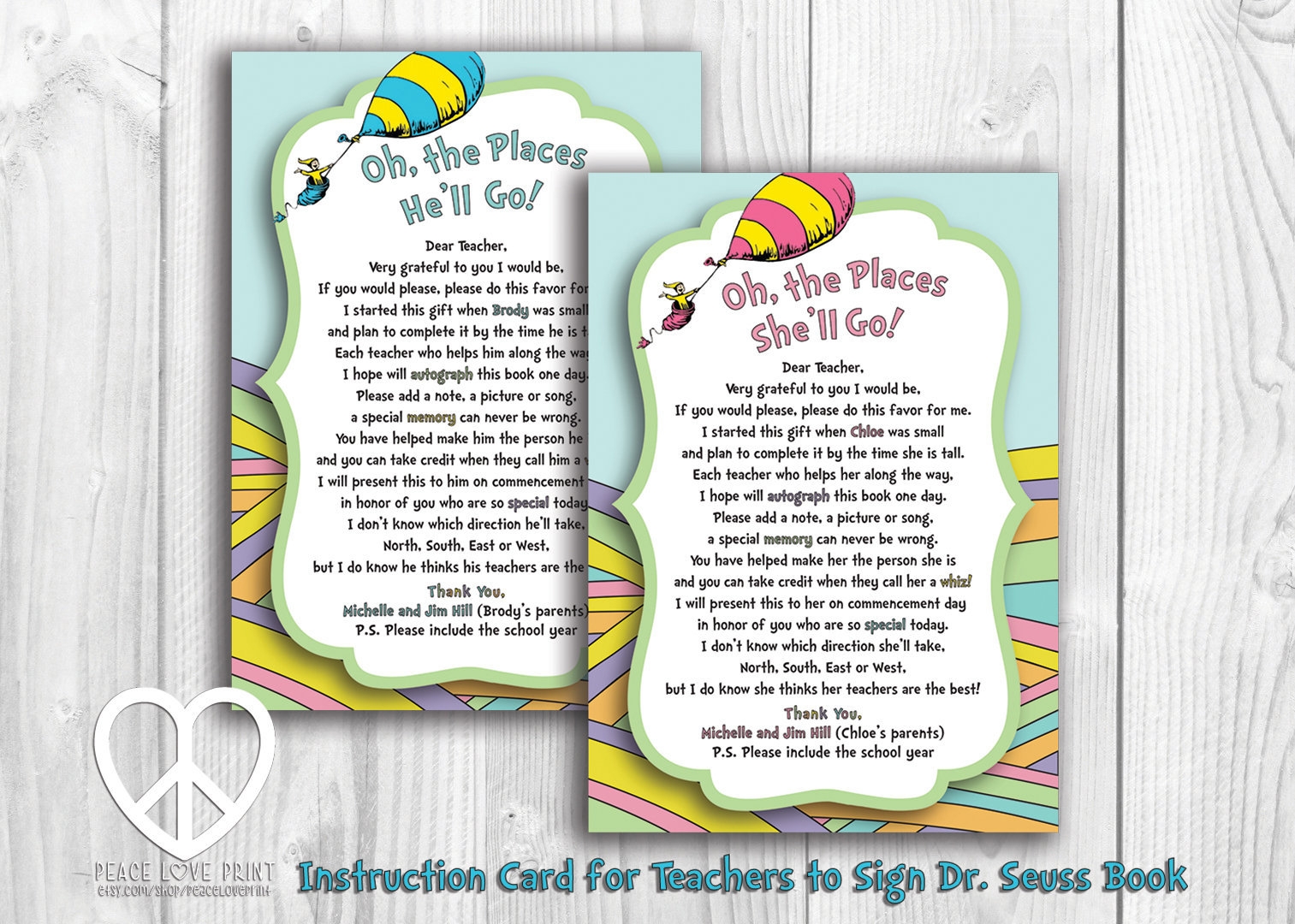 Oh The Places You Ll Go Instruction Card For Teachers To Sign Book Digital File Etsy