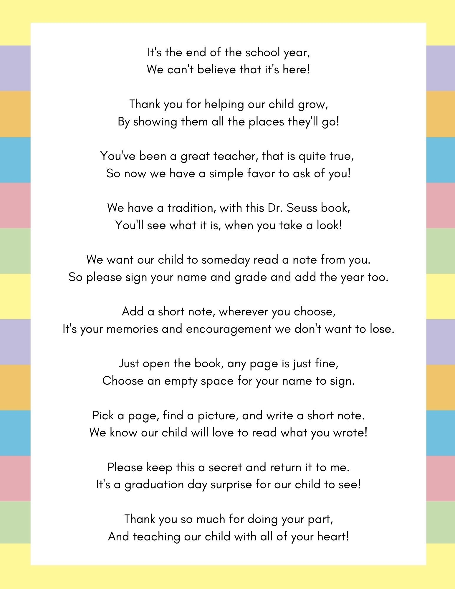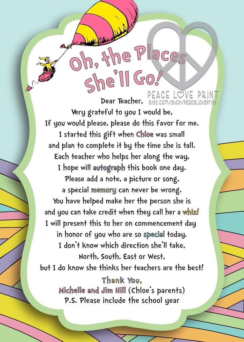 Teacher Letter For Oh The Places You Ll Go By Dr Seuss Letter To Give To Teachers With Dr Seuss Book Etsy Letter To Teacher Lettering Teacher