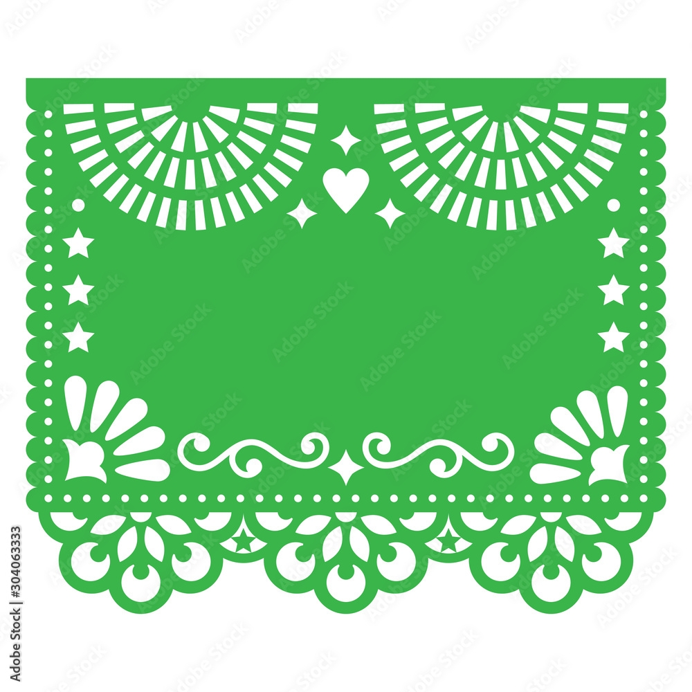 Papel Picado Vector Blank Template Design Floral Green Design With Abstract Shapes Retro Mexican Paper Decorations Pattern Stock Vector Adobe Stock