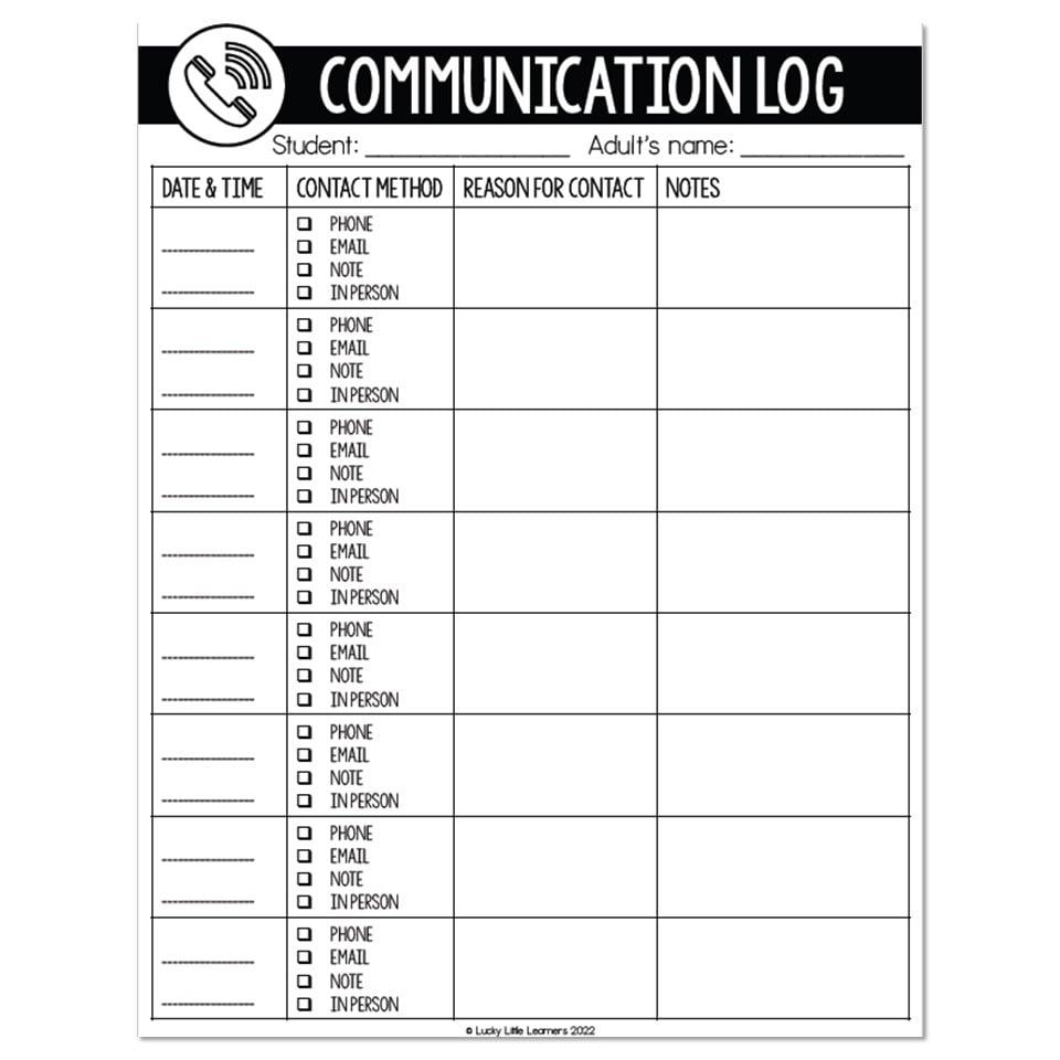 Parent Communication Log For Teachers