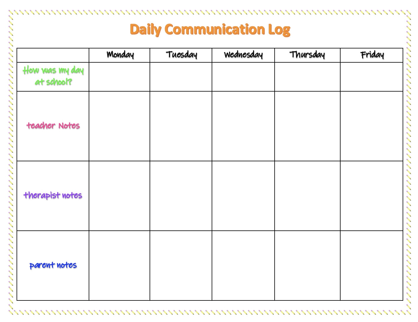 Parent Teacher Therapist Communication Log EDITABLE Etsy