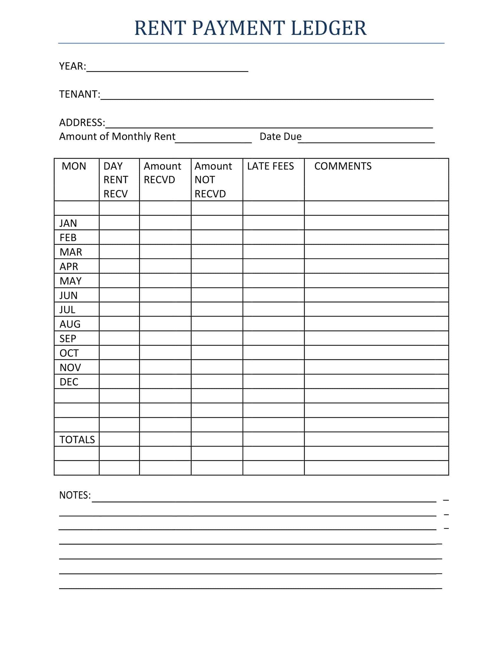Free Printable Rental Ledger Template Excel Word PDF Google Sheets