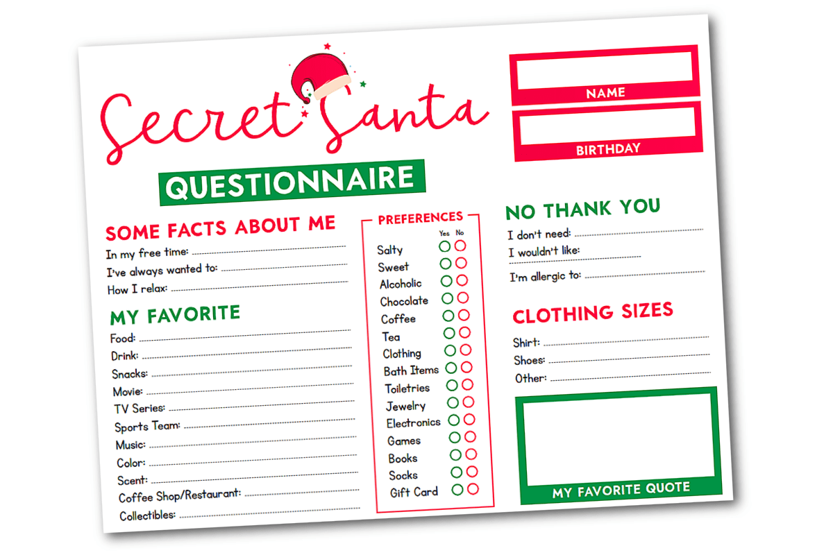 Secret Santa Questionnaire Free Printable Fun Money Mom