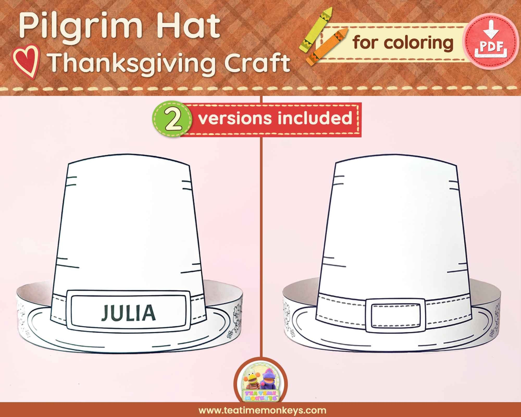 Pilgrim Hat Paper Crown Thanksgiving Settler Party Coloring Printable Kids Craft Costume Printable Favor Costume DIY Instant Download Etsy Finland
