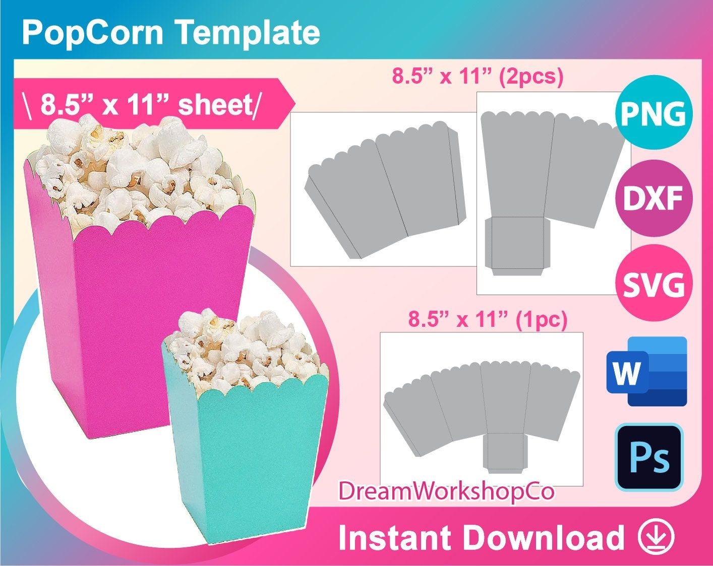 Popcorn Box Template Bundle Popcorn Box Template Canva SVG DXF Ms Word Docx Png Psd 8 5×11 Sheet Printable Etsy Popcorn Box Template Box Template Popcorn Box