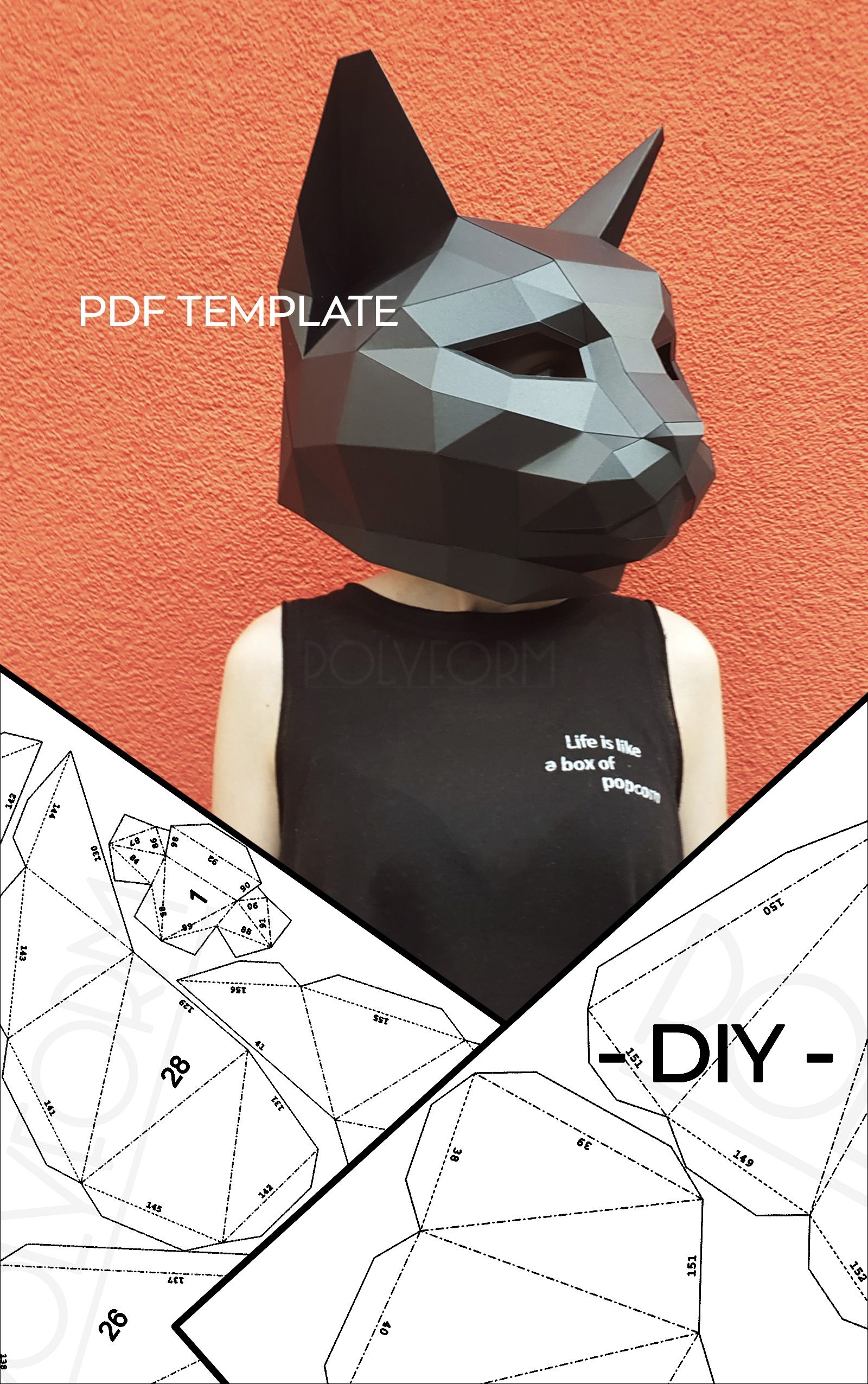 CAT MASK Low Poly Animal Halloween Decor Papercraft PDF Template Etsy Animal Mask Templates Cat Mask Paper Craft Videos