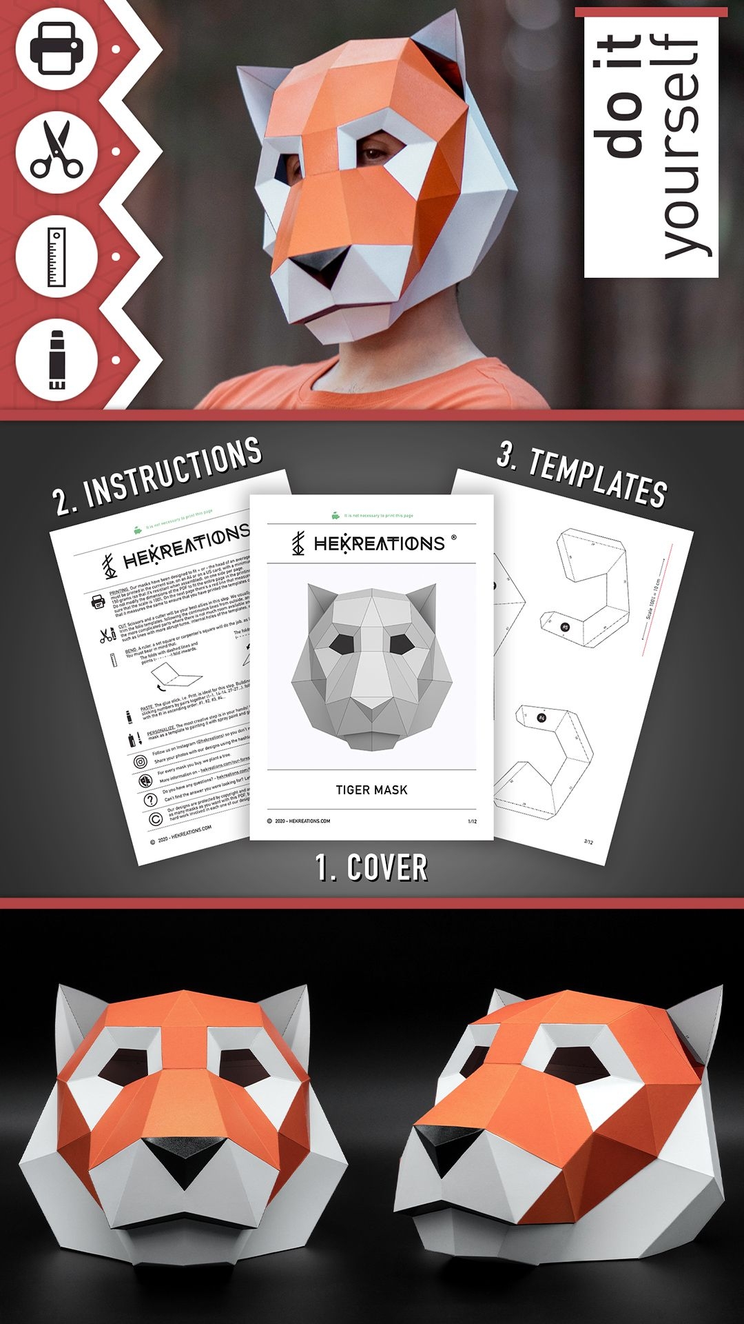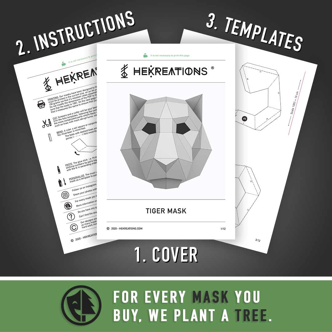 Tiger Mask DIY Paper Mask Printable Template Papercraft 3D Mask Polygon Low Poly Geometric Costume Pattern PDF Download Etsy Tiger Mask Paper Mask Template Paper Mask