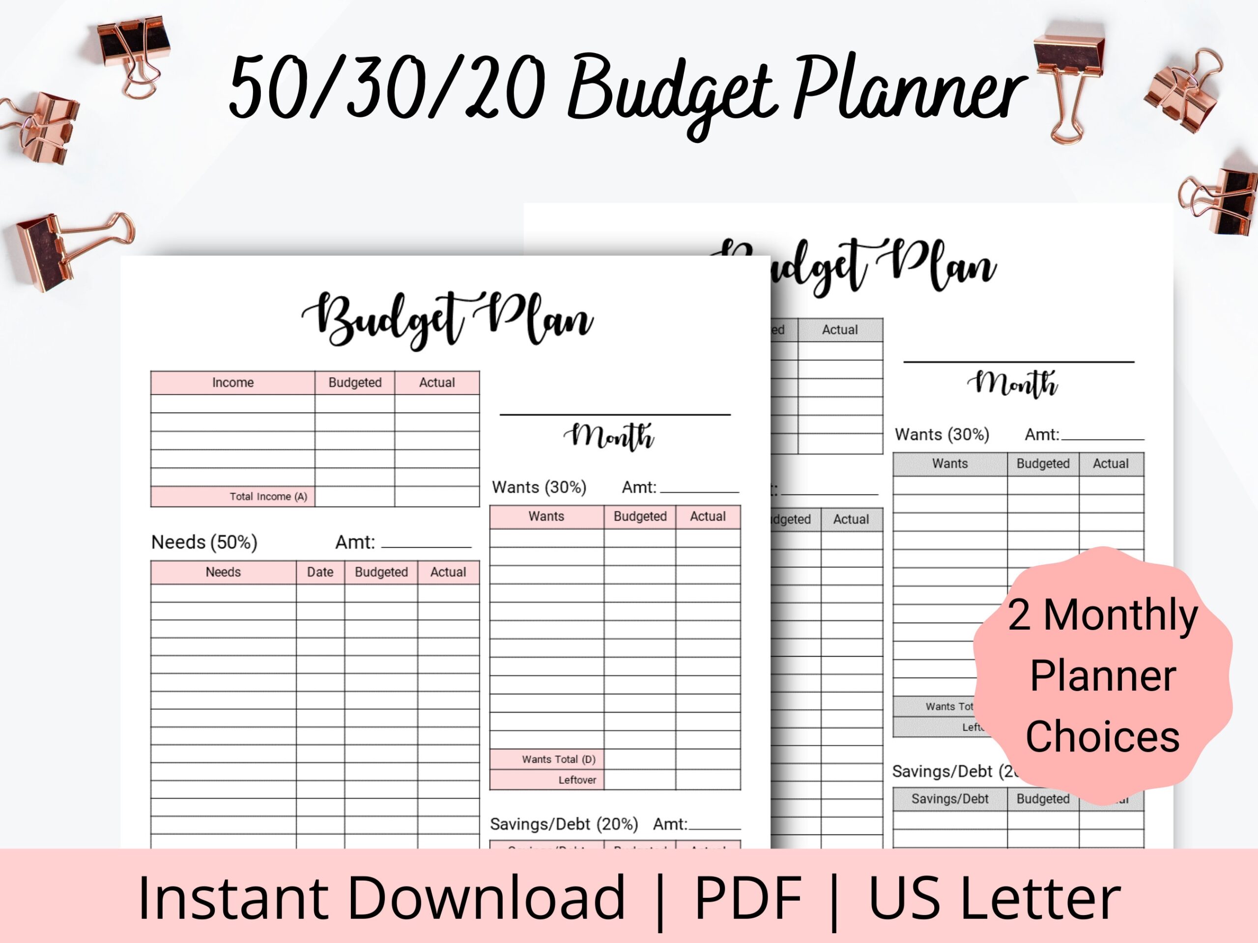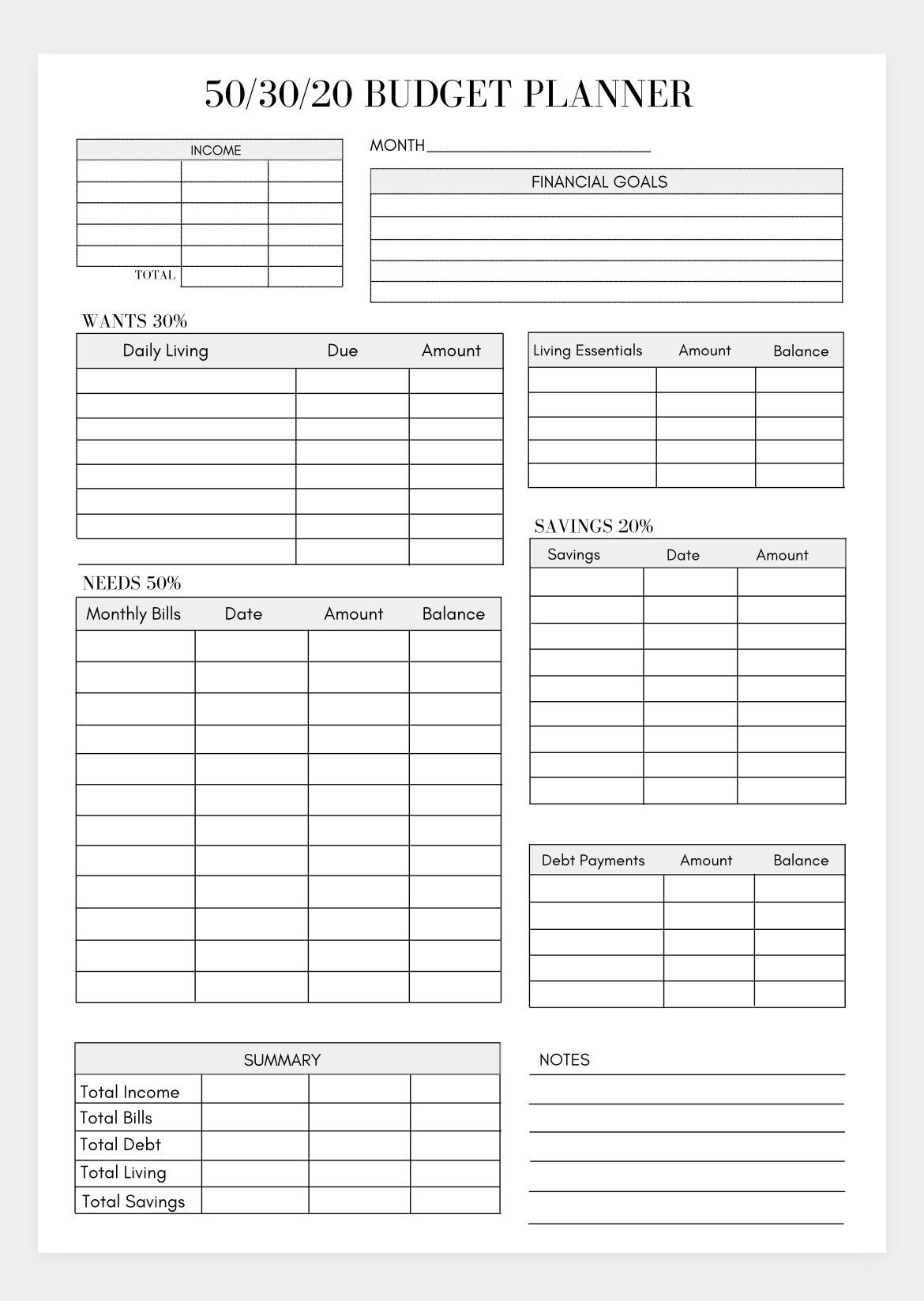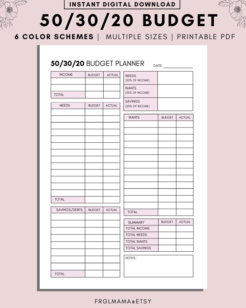 50 30 20 Budget Overview Template Printable Monthly Budget Planner 50 30 20 Rule Income Expense Money Management Worksheet Cash Flow Etsy