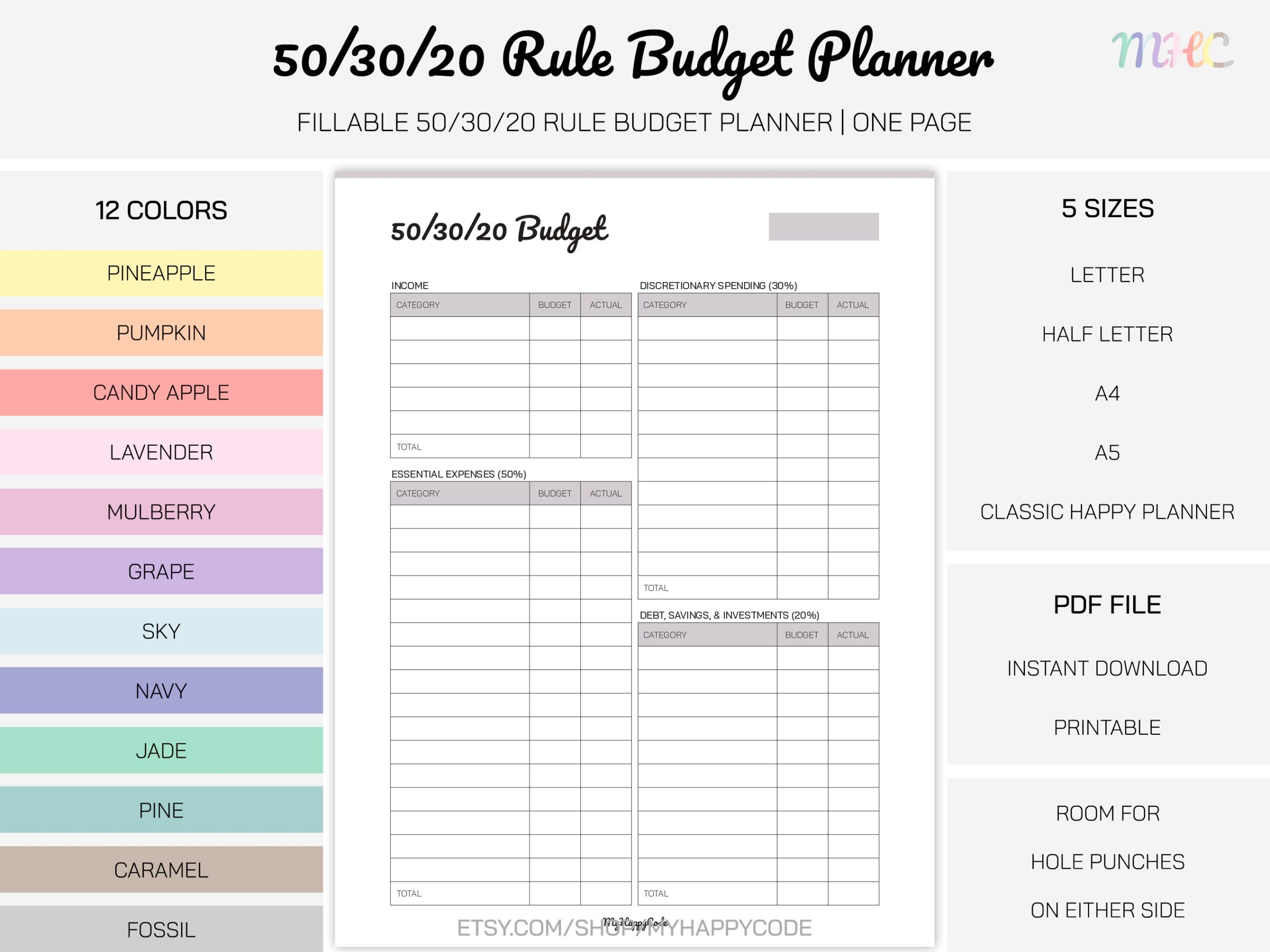 Fillable 50 30 20 Rule Budget Planner Printable 50 30 20 Budget Printable Family Budget Planner Monthly Budget Planner Personal Budget Etsy