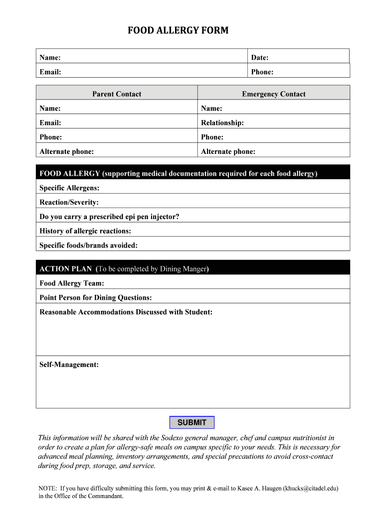 Food Allergy Form Citadel Docx Fill Out Sign Online DocHub