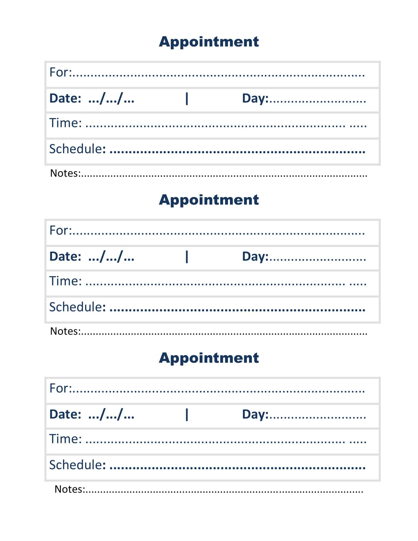 Free Printable Appointment Card Templates Word PDF Excel Medical