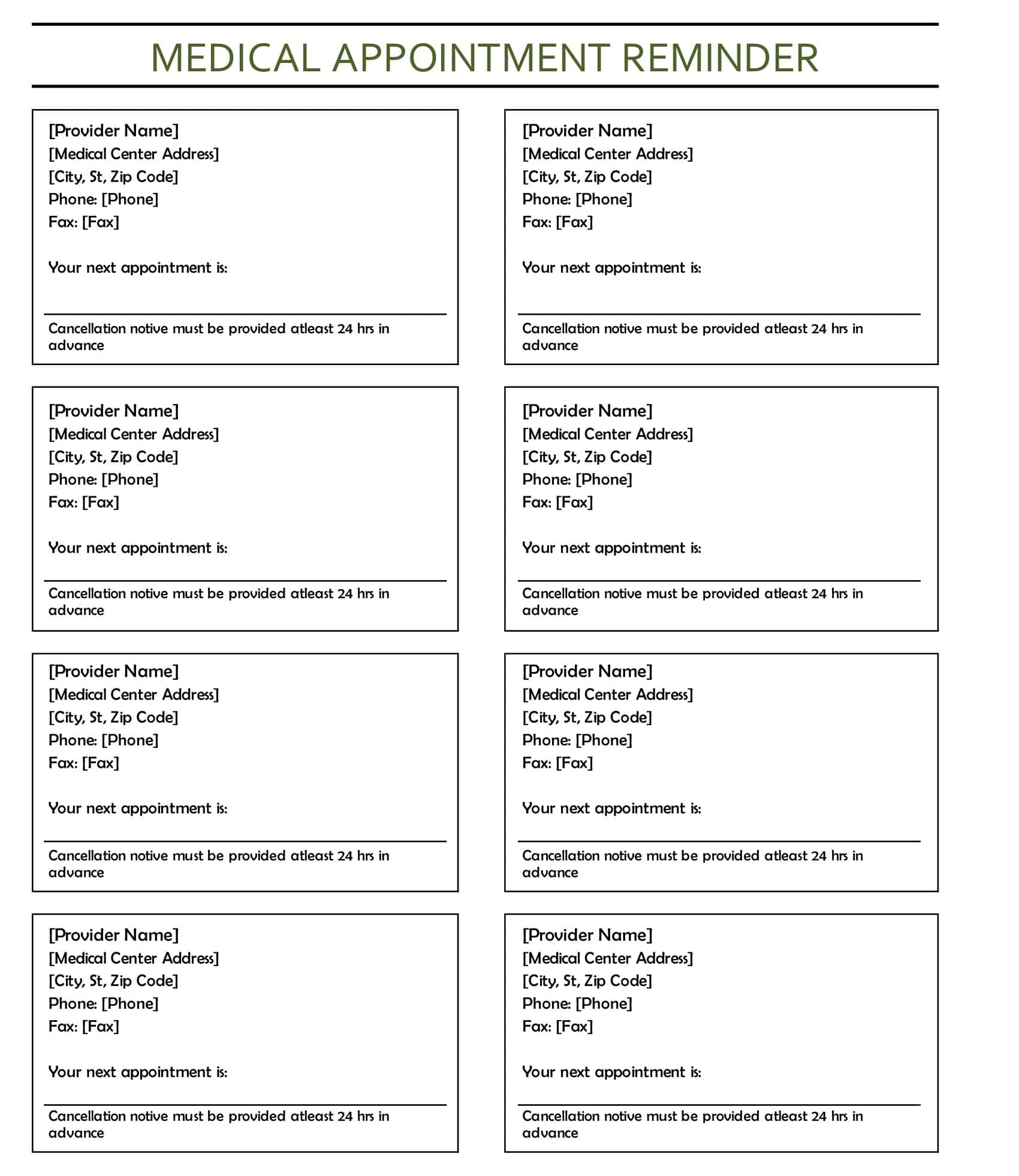 Printable Appointment Reminder Cards Template Free – A printable template is a pre-designed document or design that you can customize and use for various purposes. These templates are normally readily available in digital formats and can be printed or shared online.