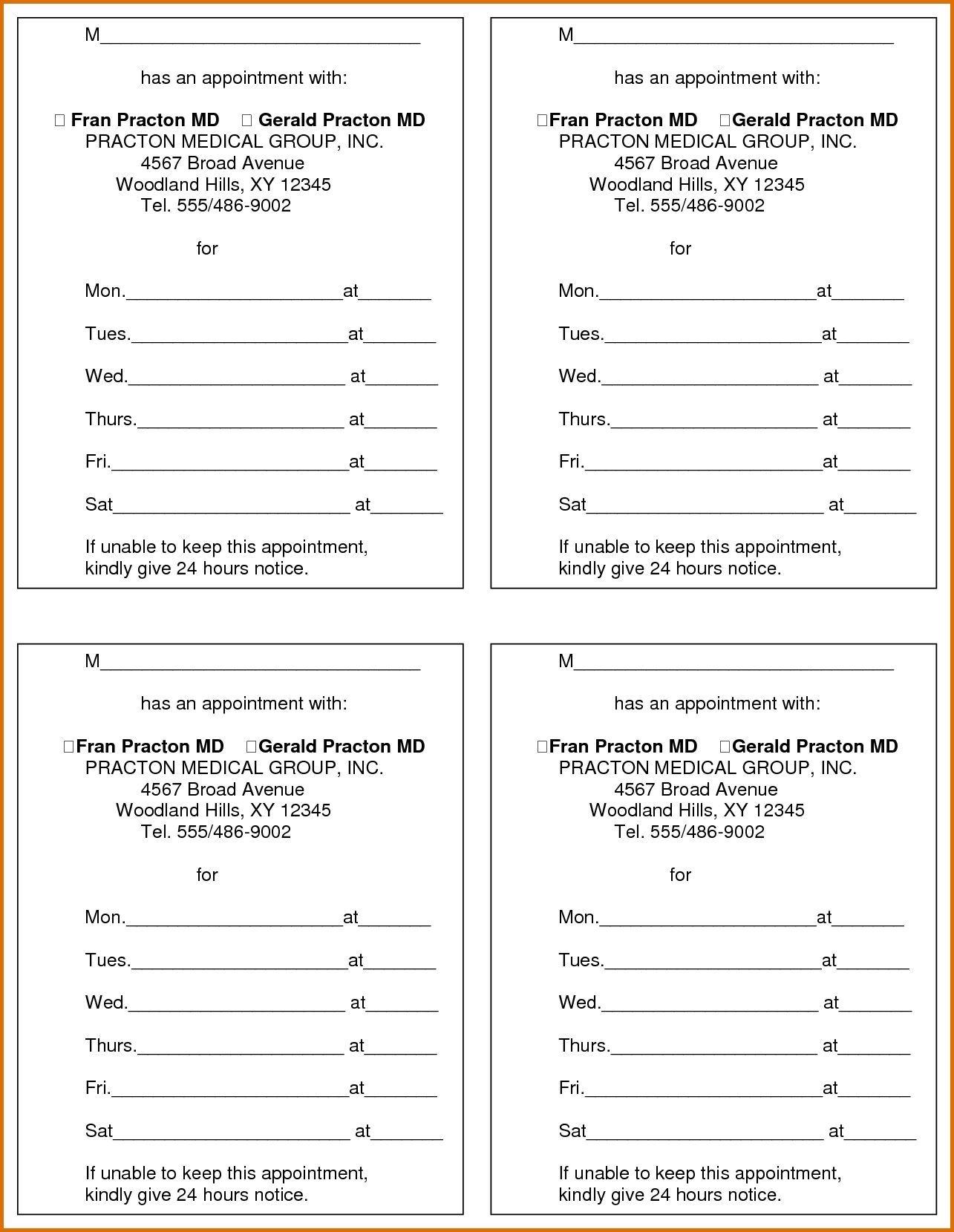 Printable Appointment Reminder Cards Template Free