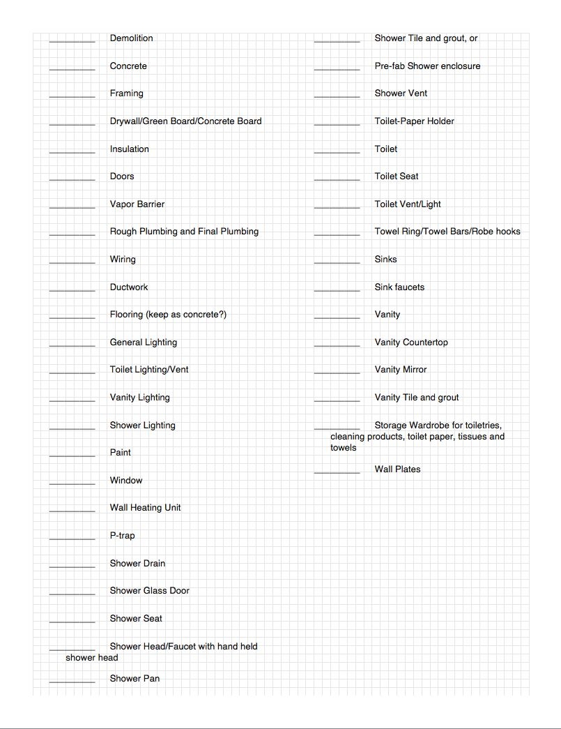 Printable Bathroom Remodel Checklist Template
