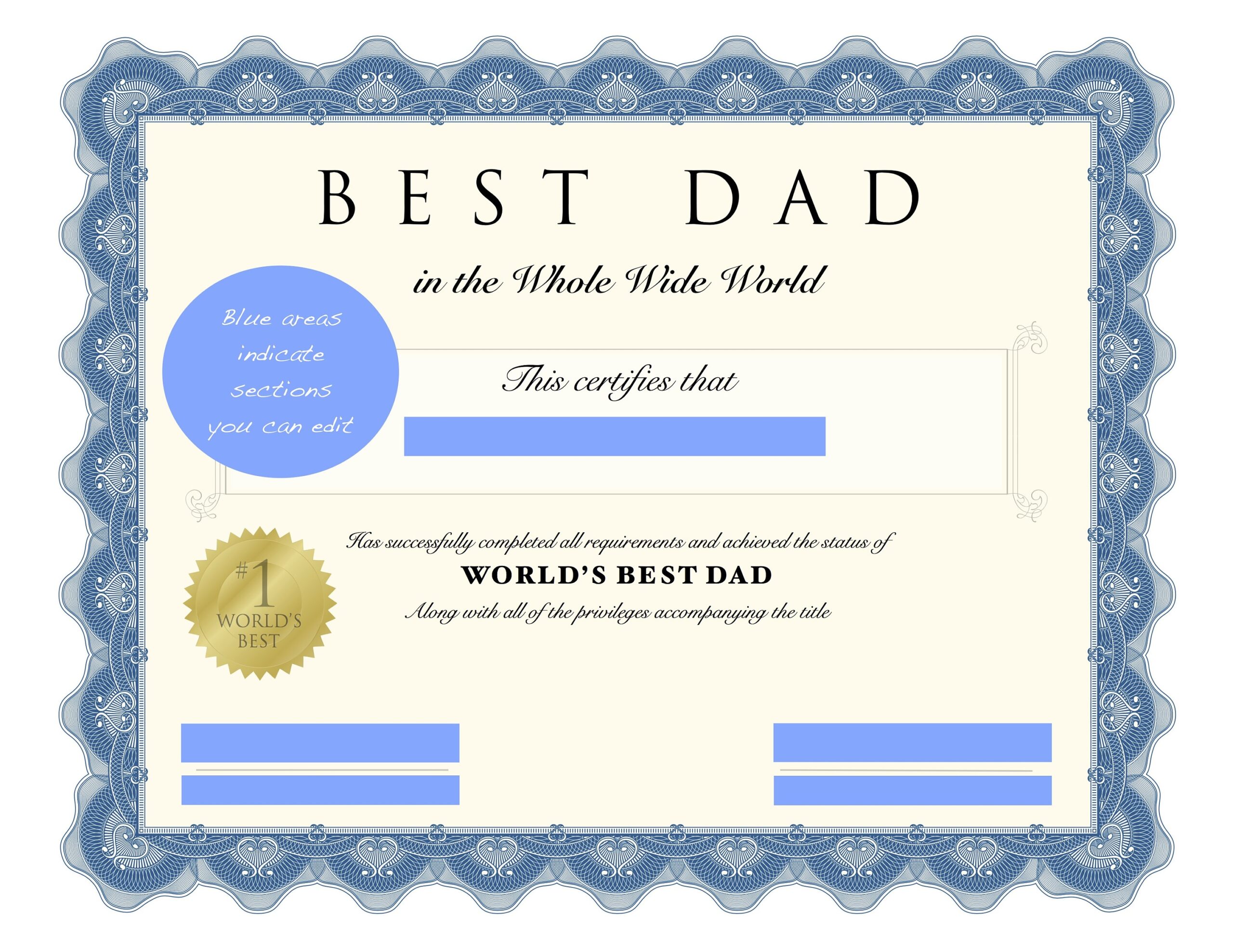 Father S Day Dad Birthday Printable Father Certificate Dad Editable Certificate World S Best Dad Instant Download PDF JPG Word Etsy Israel