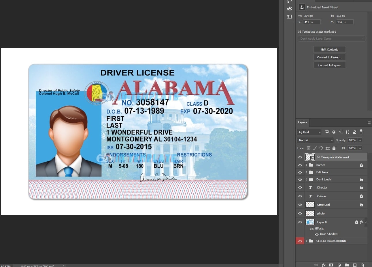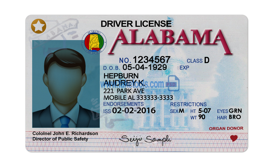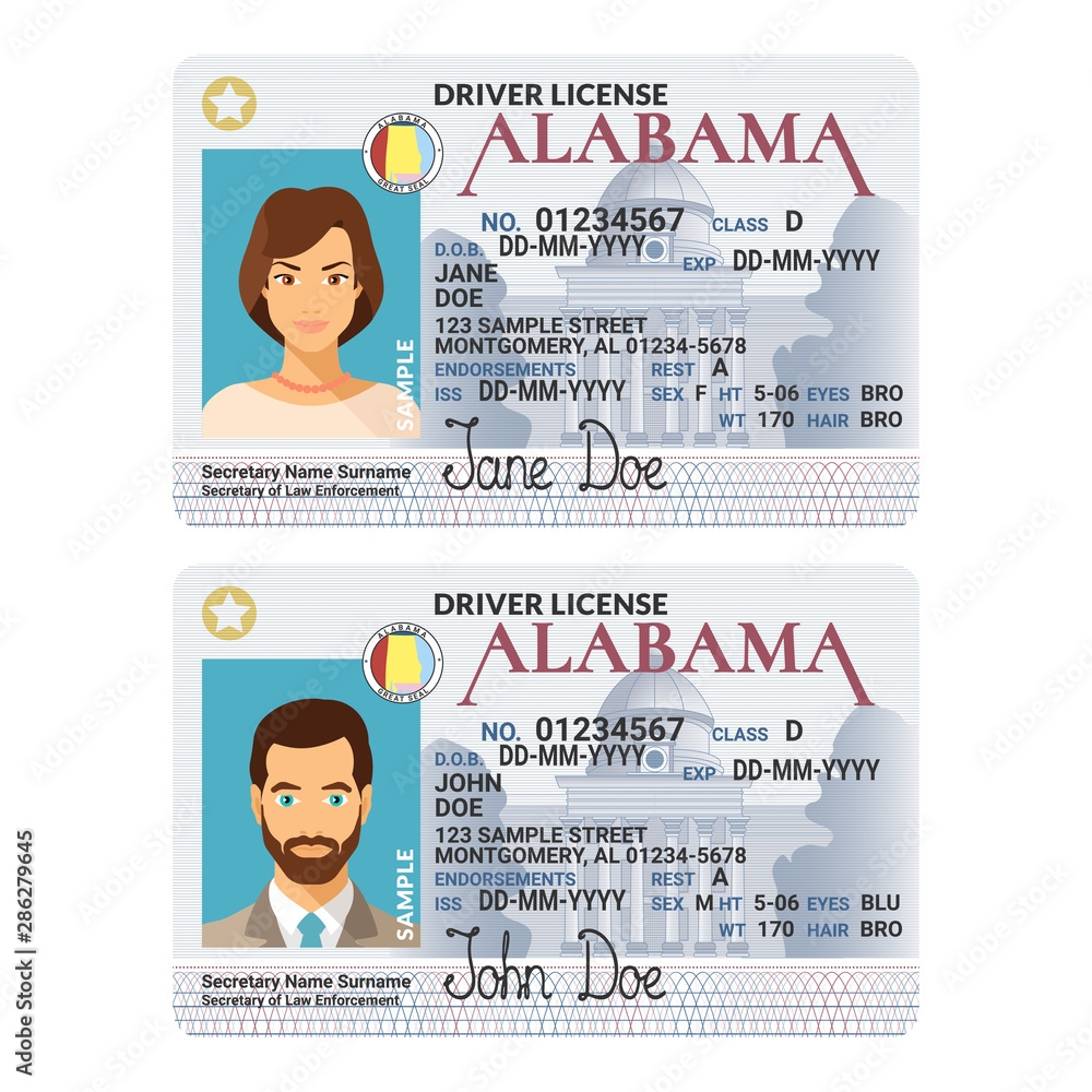 Vector Template Of Sample Driver License Plastic Card For USA Alabama Stock Vector Adobe Stock