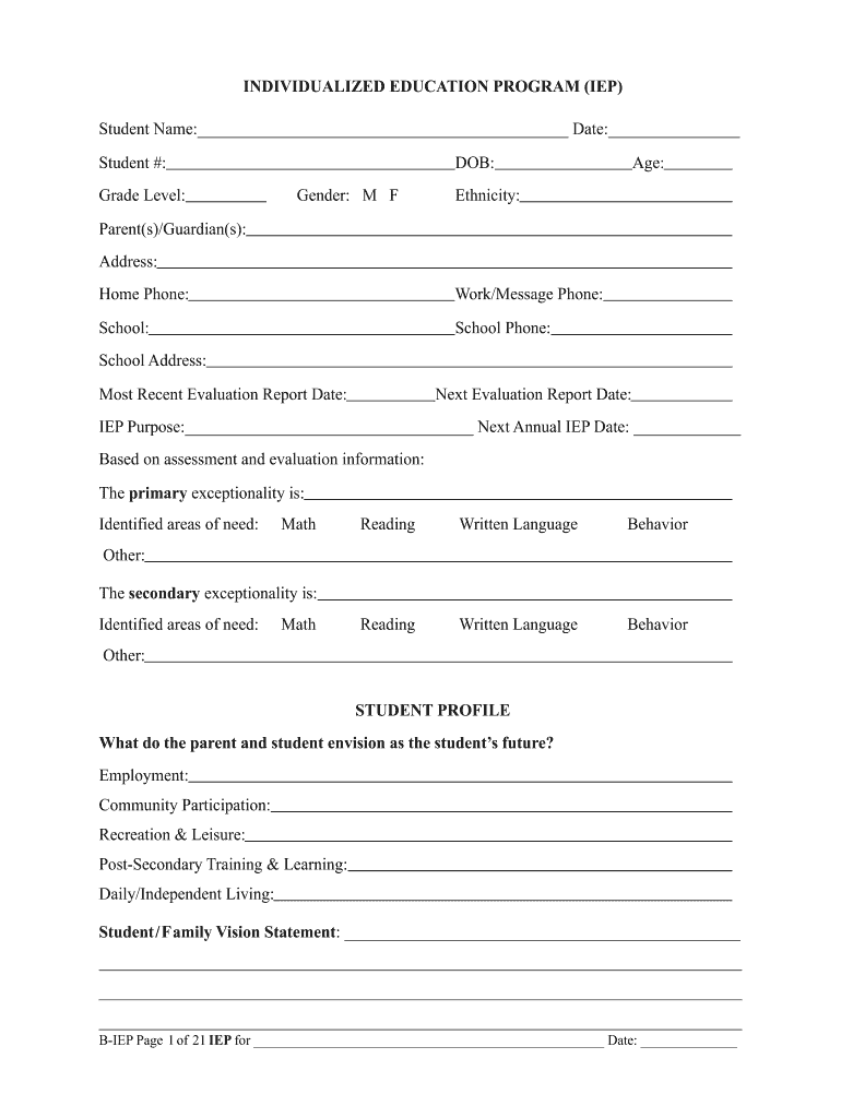 Blank Iep Template 7 TEMPLATES EXAMPLE TEMPLATES EXAMPLE Individualized Education Program Iep Special Education