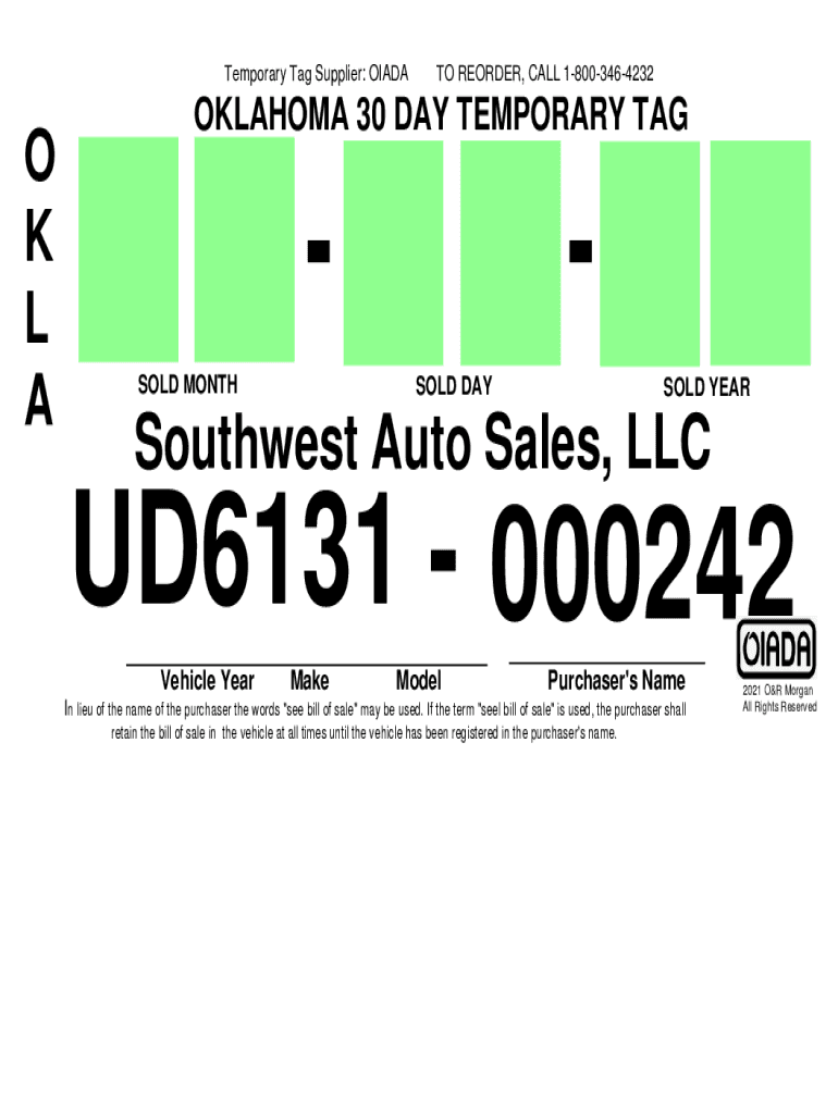Printable Blank Oklahoma Temporary Tag Template