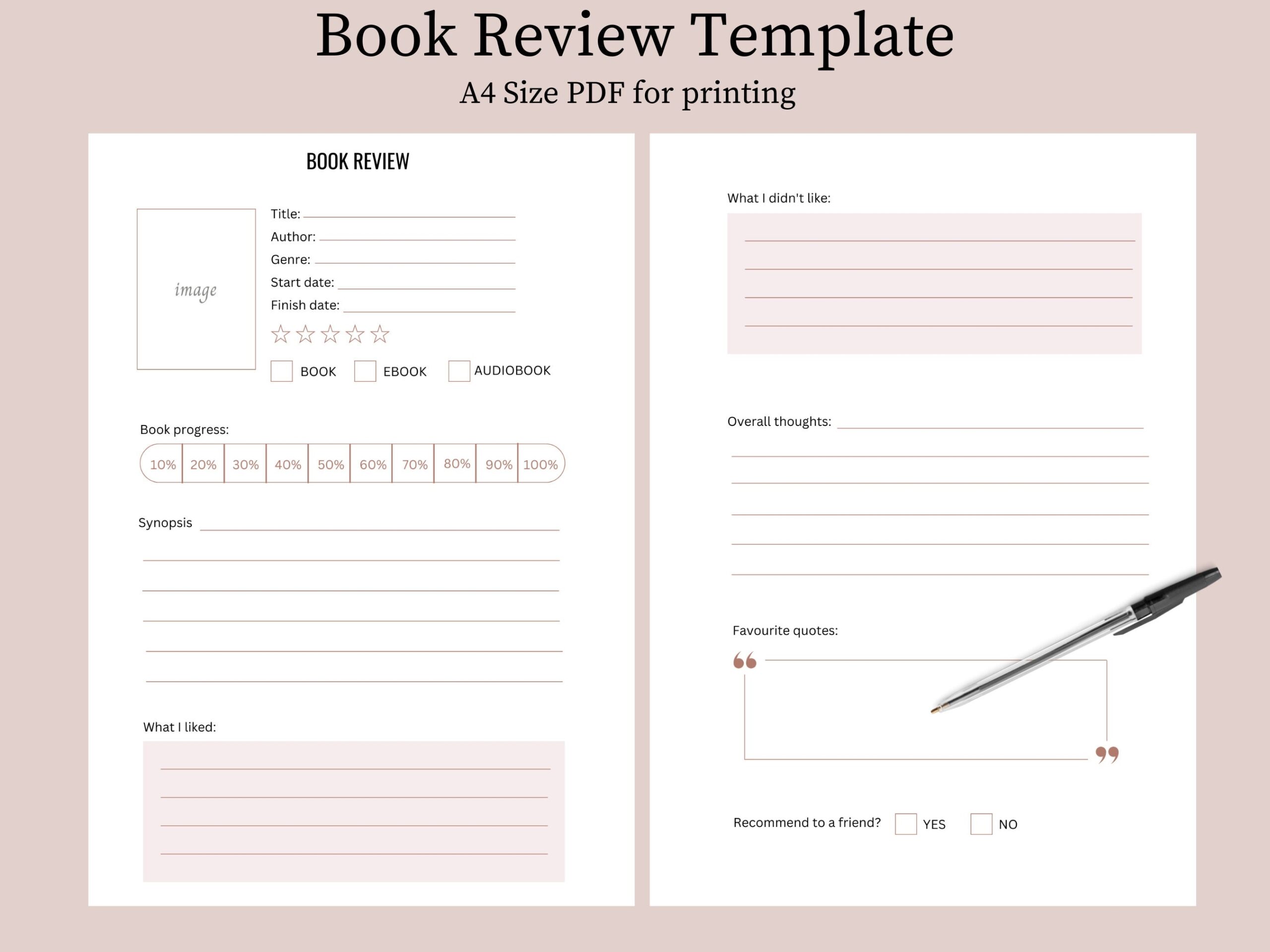 Book Review Template A4 PDF Printable Etsy