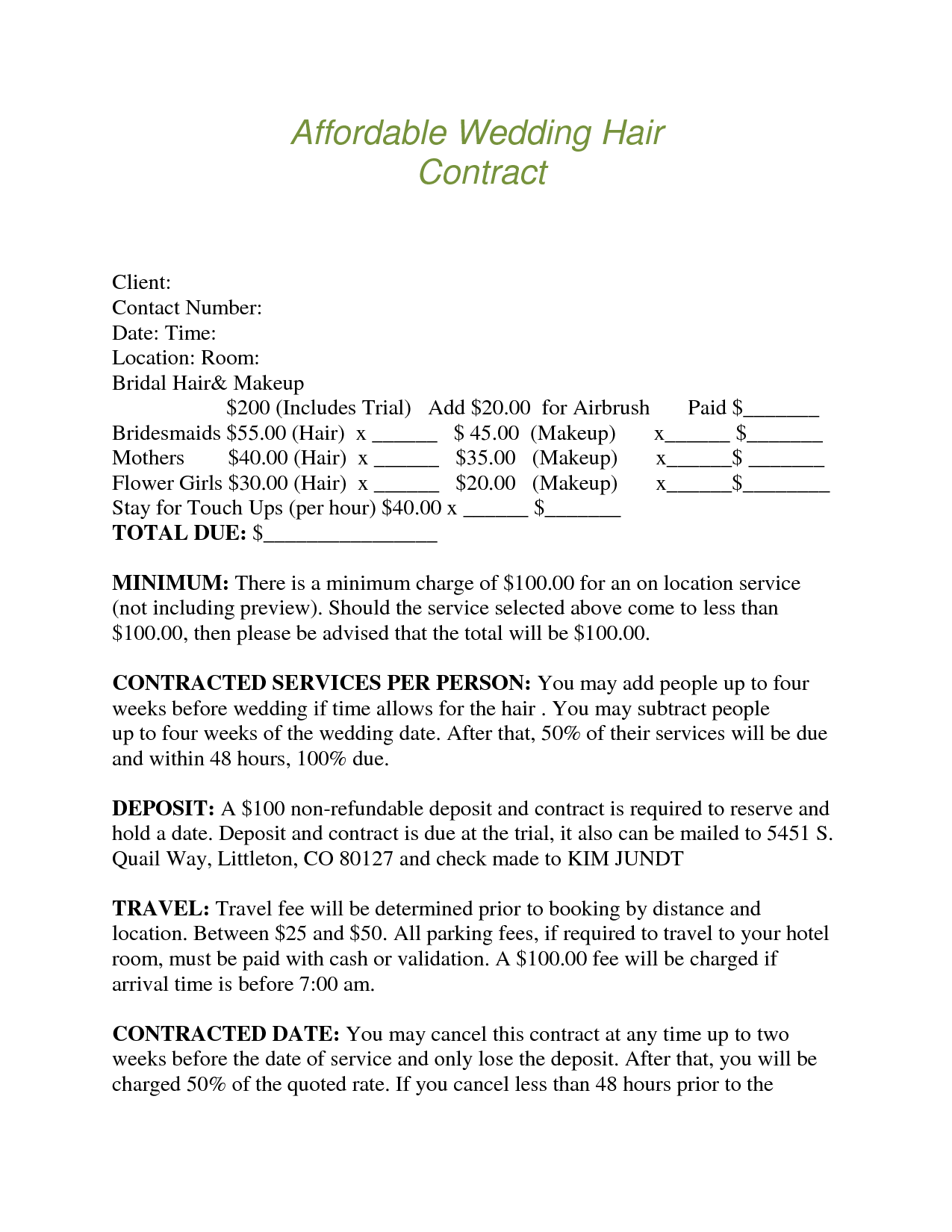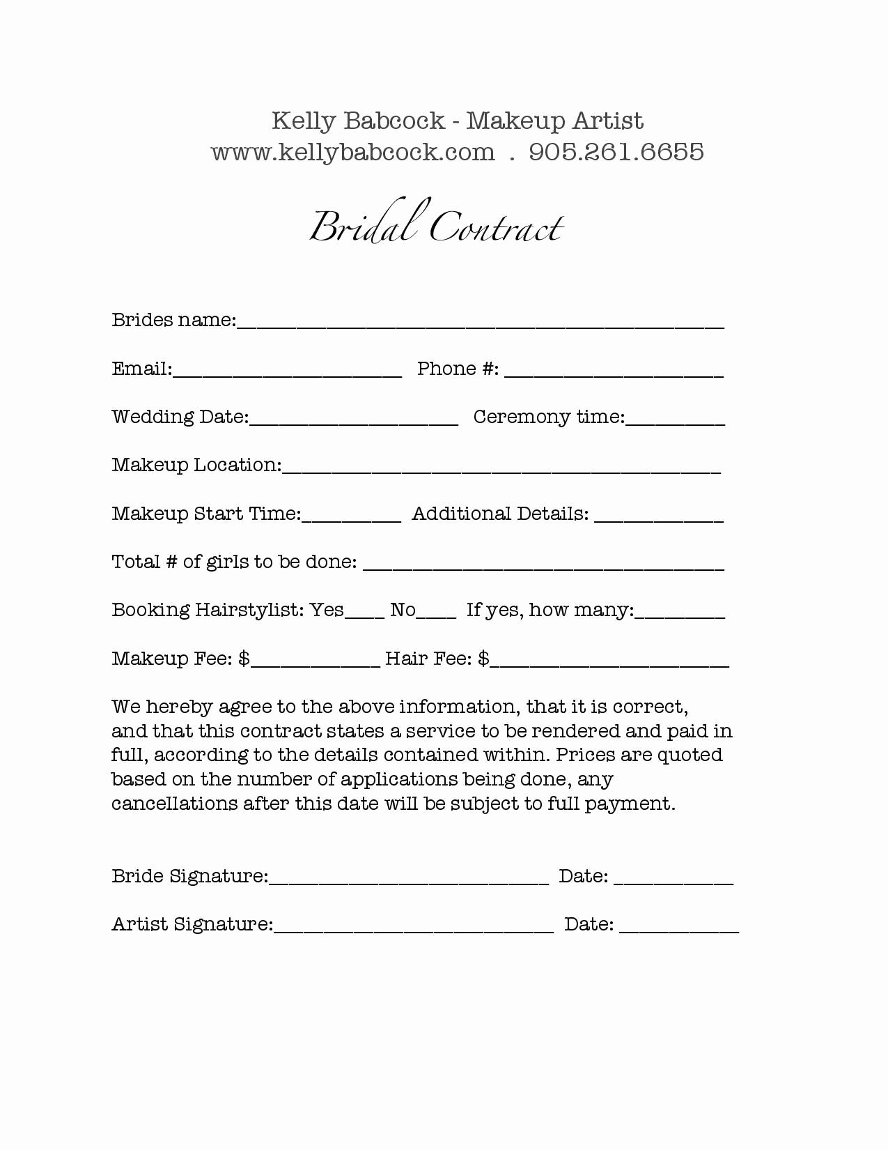 Printable Bridal Hair Contract Template