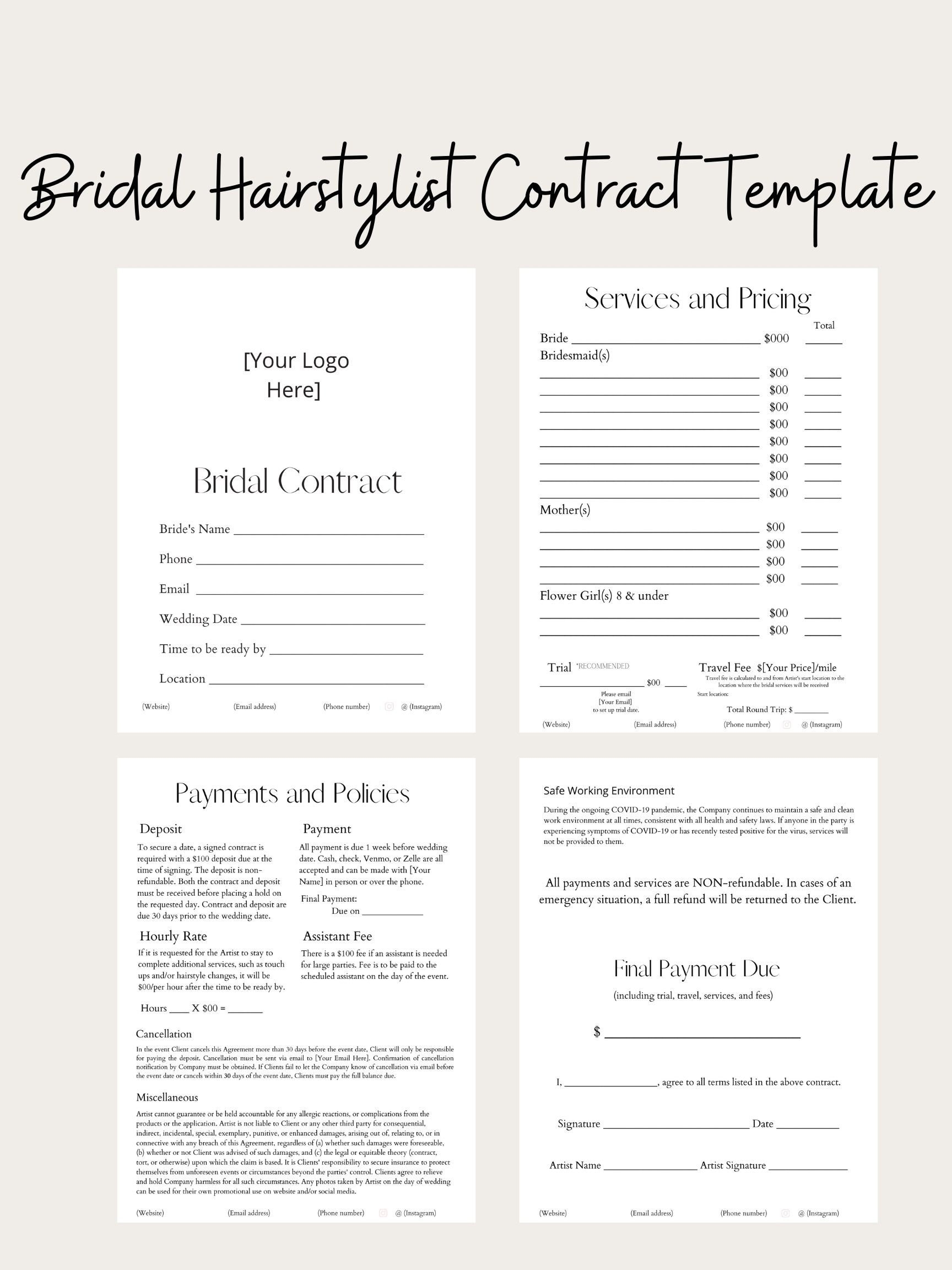 Editable Bridal Hairstylist Contract Etsy Israel