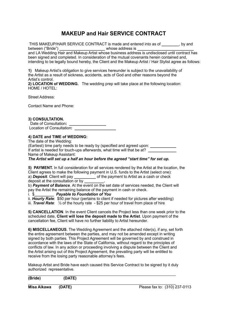 Makeup Artist Contract Template Fill Online Printable Fillable Blank PdfFiller