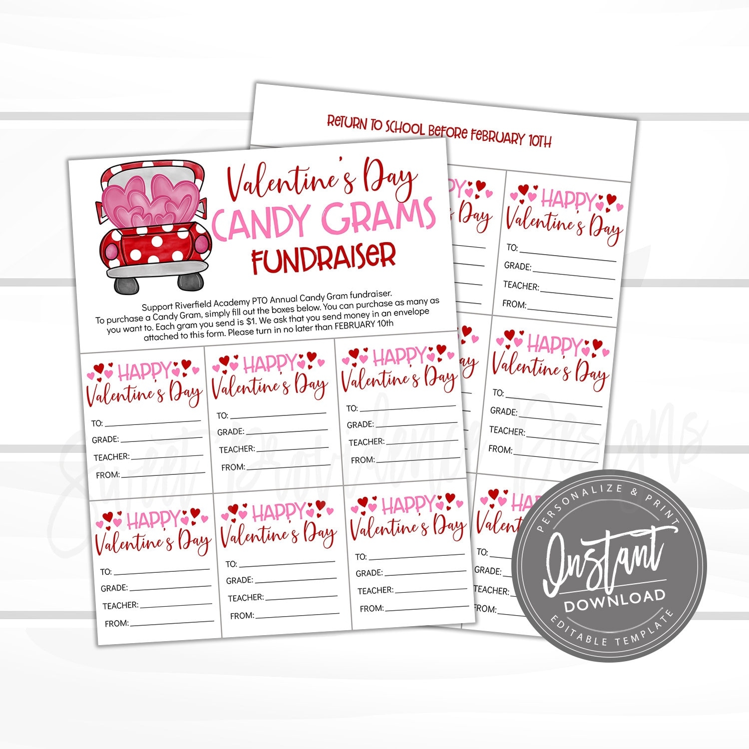Candy Gram Flyer PTO PTA EDITABLE Valentine S Day School Fundraiser Template Valentine School Church Community Event Instant Download Sweet Providence Designs