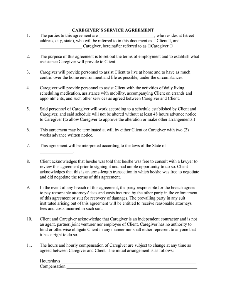 Agreement Caregiver Fill Online Printable Fillable Blank PdfFiller