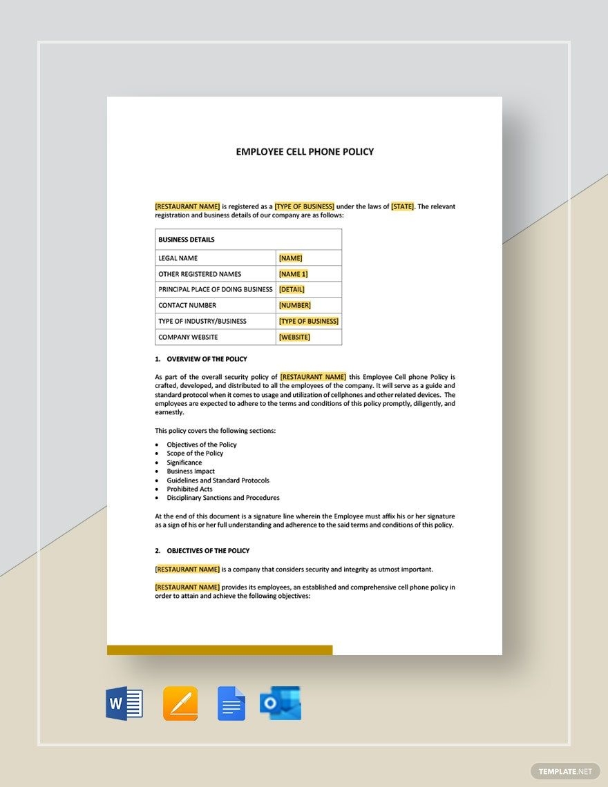 No Cell Phone Use At Work Policy Pdf Doc Template PdfFiller