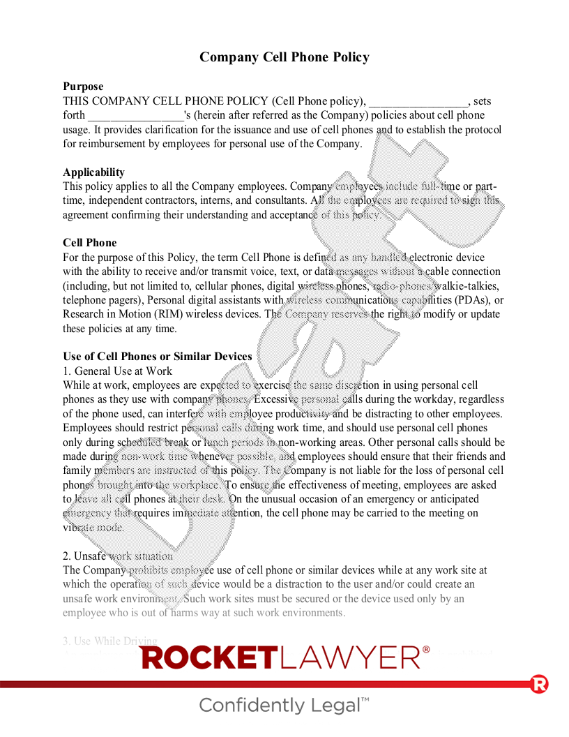 Free Company Cell Phone Policy Template Rocket Lawyer