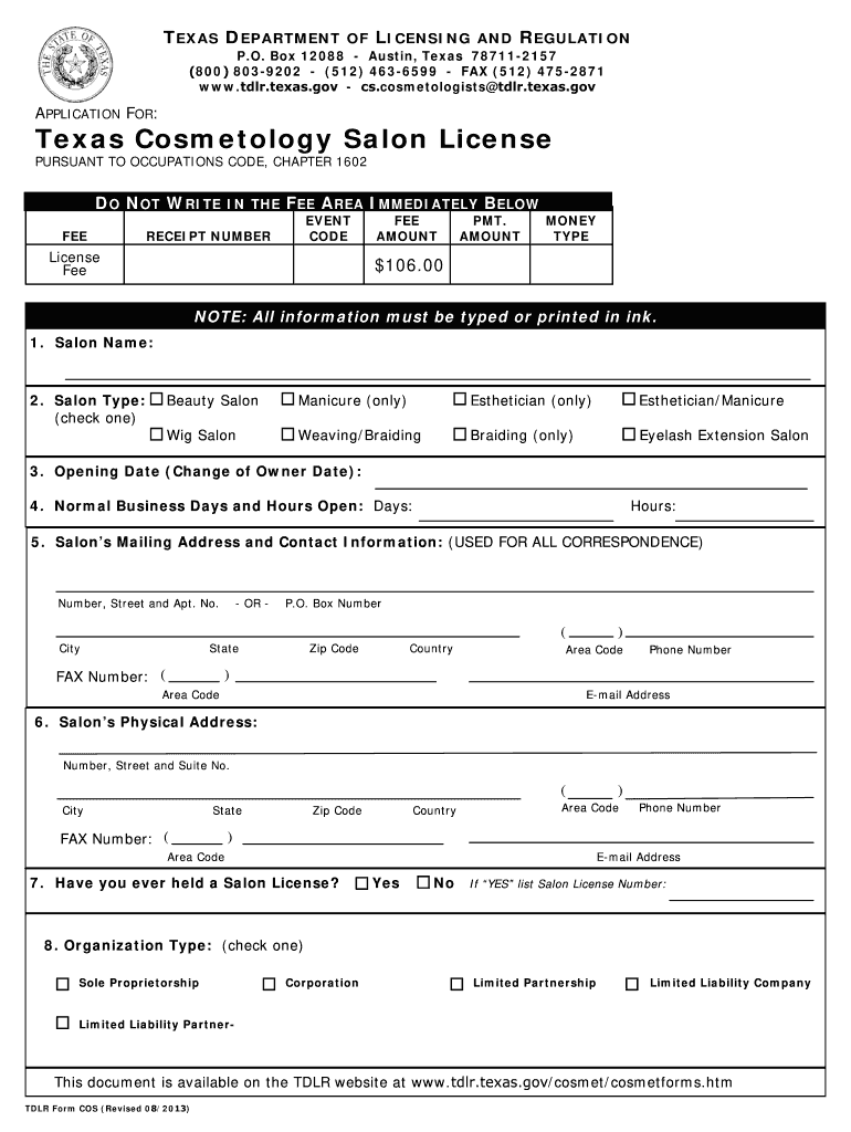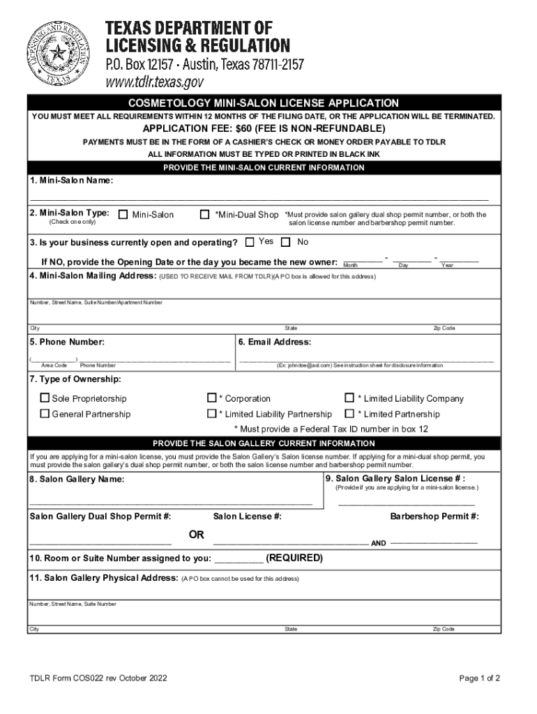 2022 2024 Form TX TDLR COS022 Fill Online Printable Fillable Blank PdfFiller