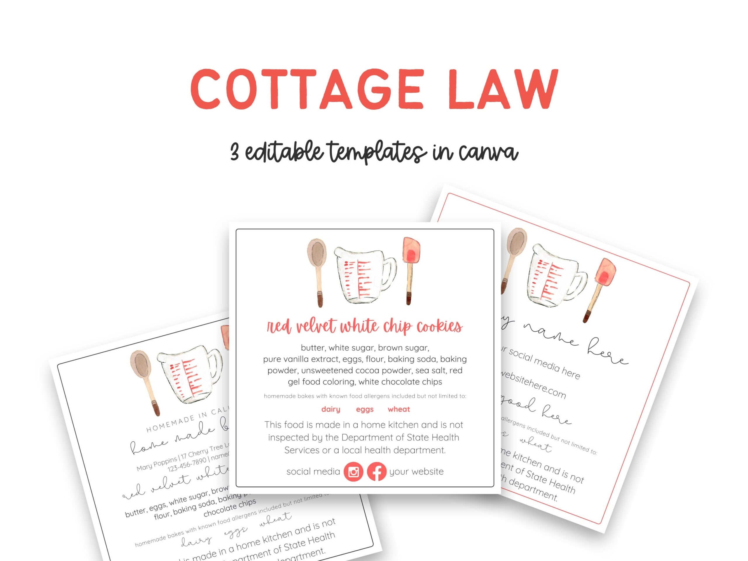 Home Bakery Cookie Sticker Cottage Food Law Label Template Canva Cupcake Ingredients List Printable Food License Allergens Information Etsy