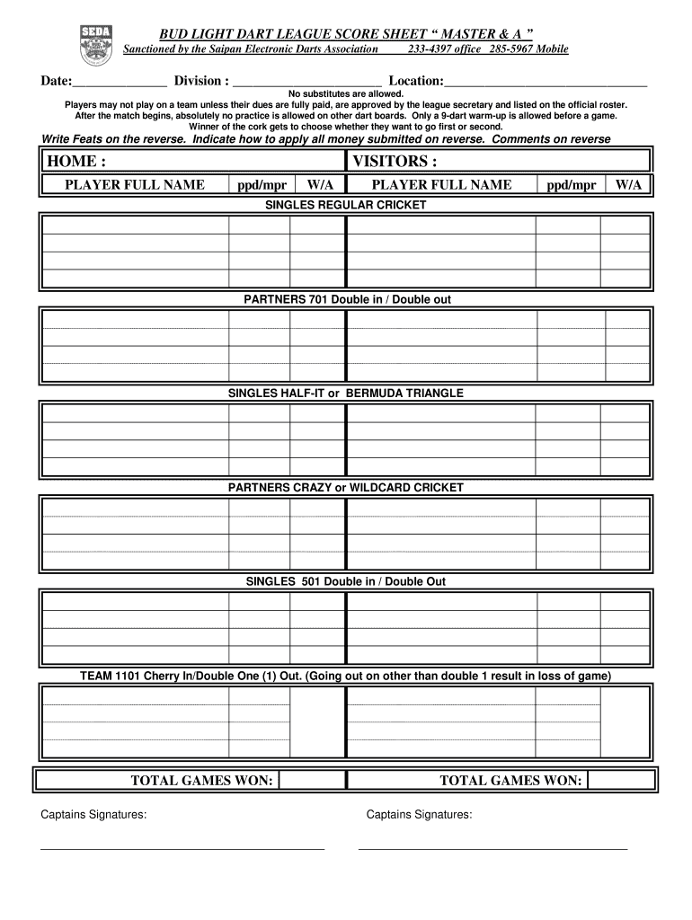 Darts Score Sheet Pdf Fill Online Printable Fillable Blank PdfFiller