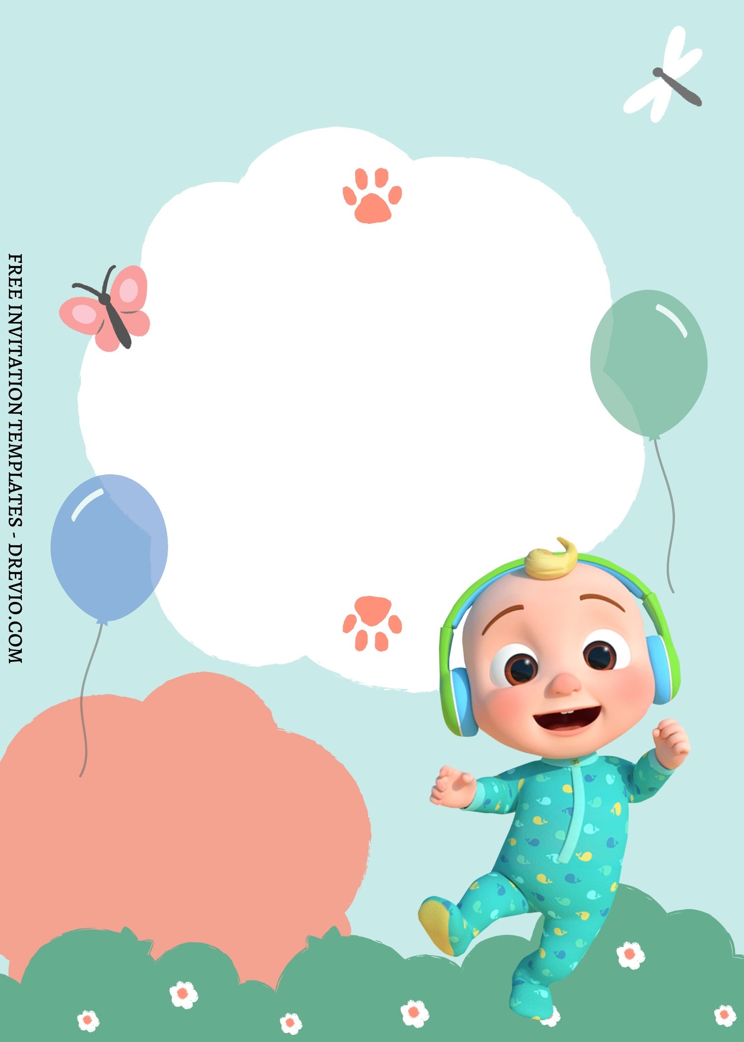Printable Downloadable Blank Cocomelon Invitation Template Free