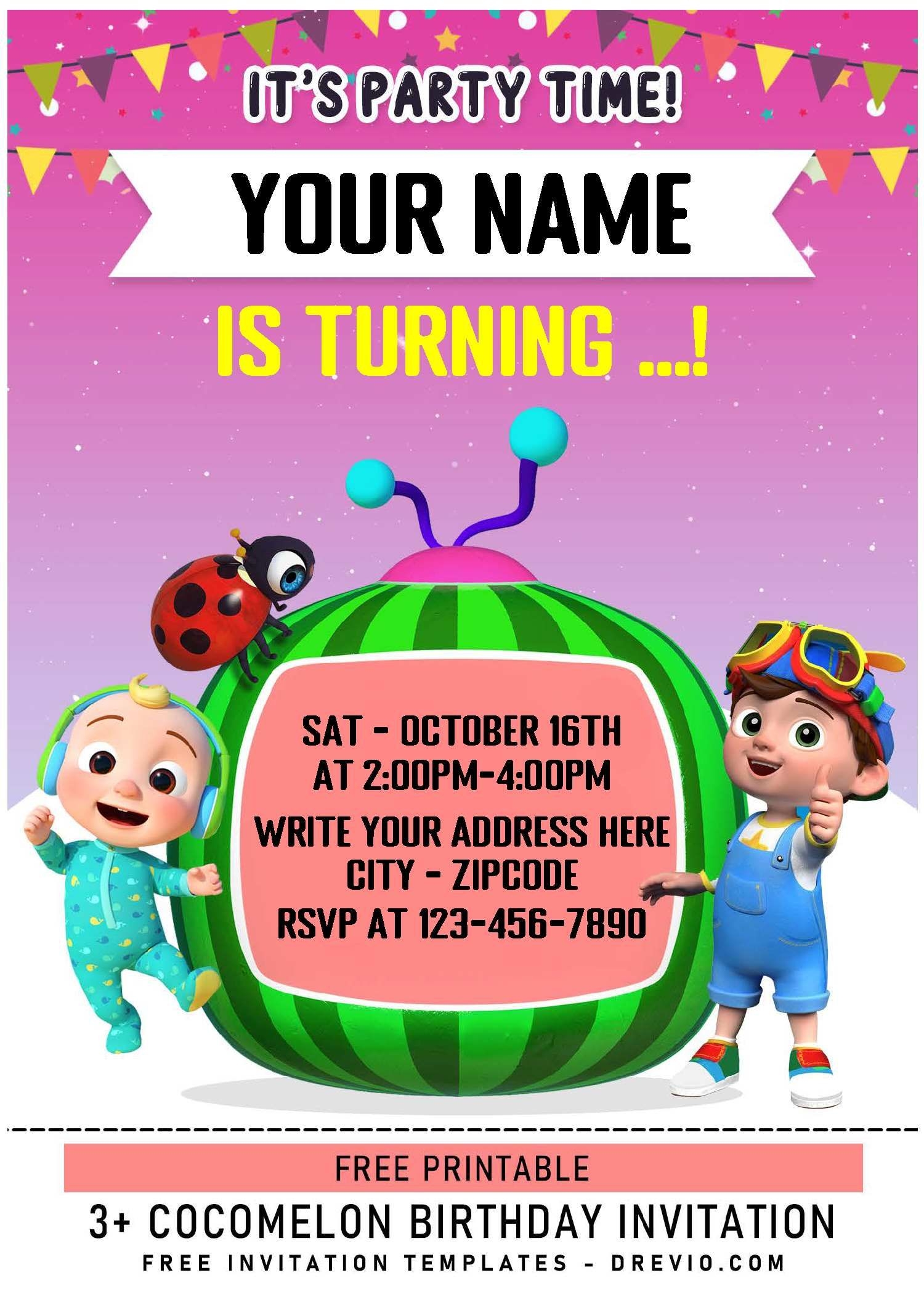 Cocomelon Invitation Template