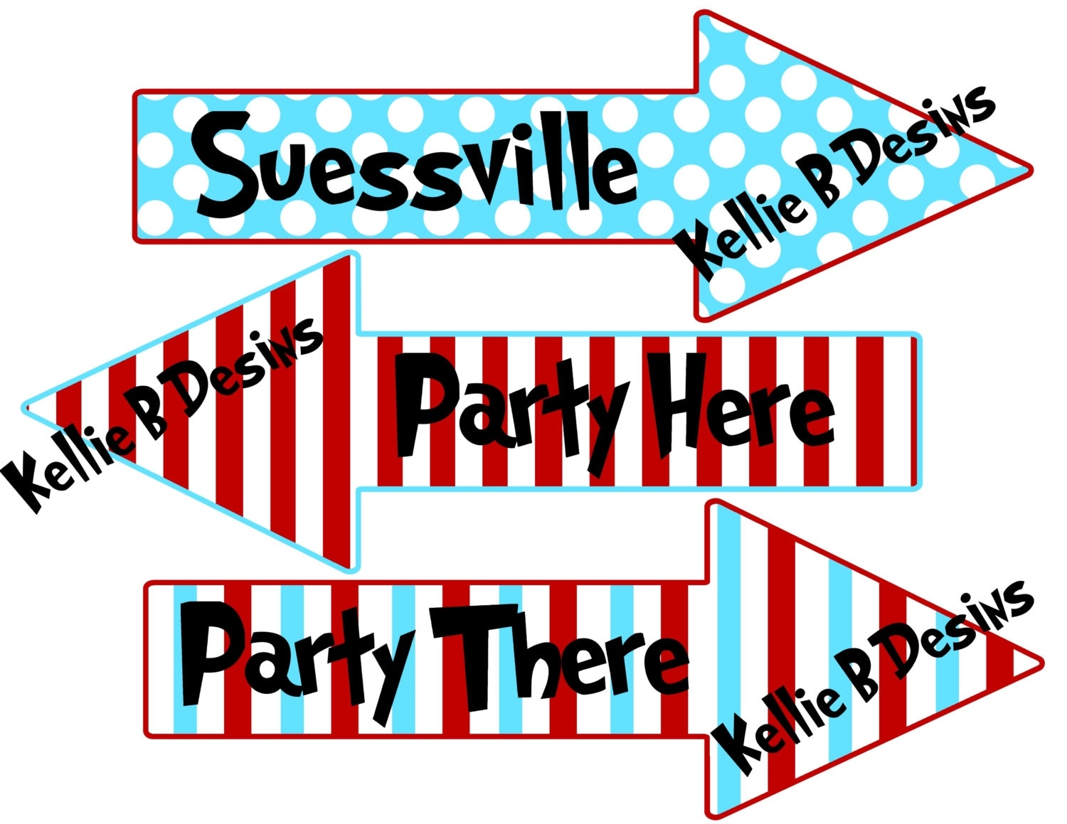 Printable Dr Seuss Arrow Signs Templates Birthday Party Cat In The Hat