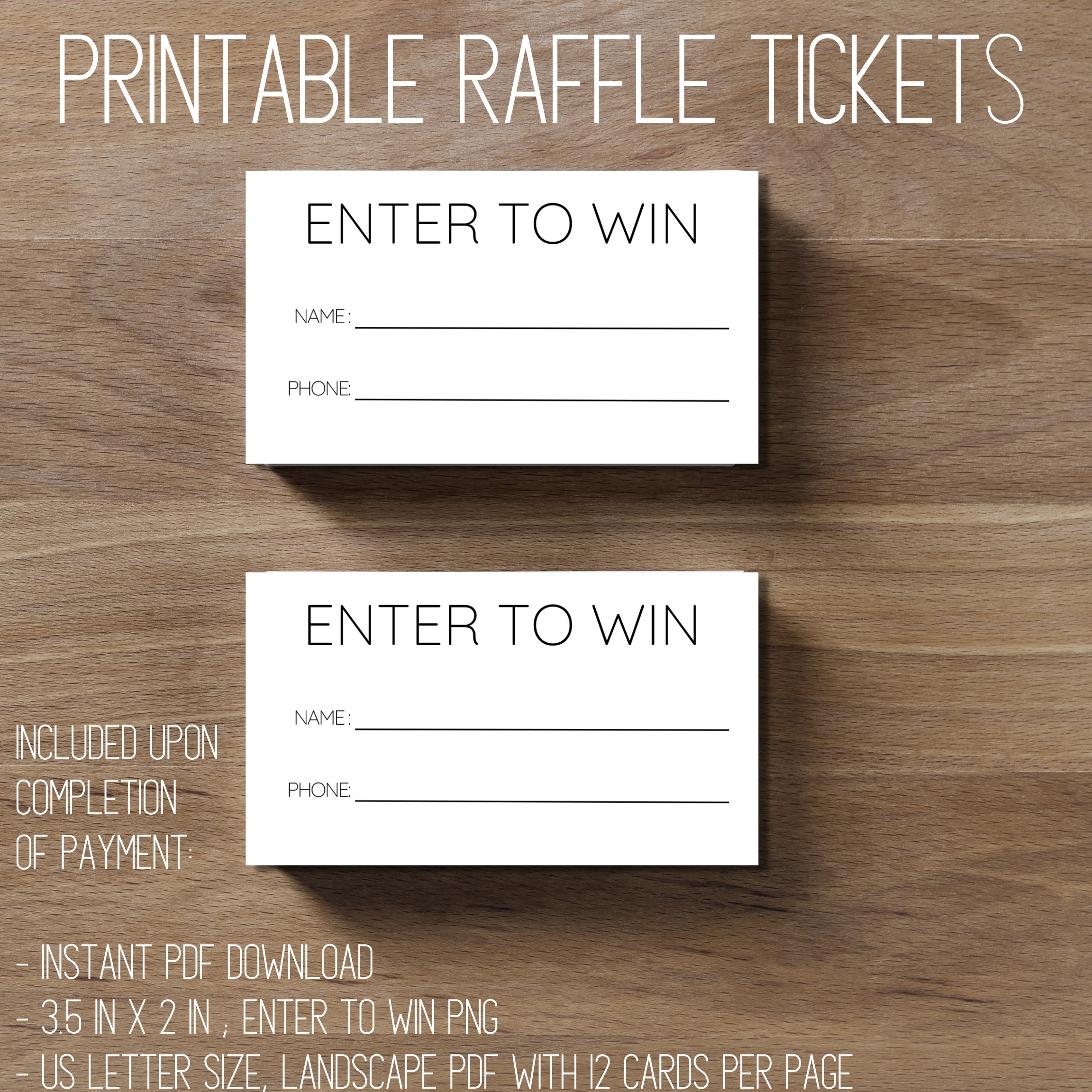 Printable Raffle Ticket Enter To Win Printable Ticket Etsy