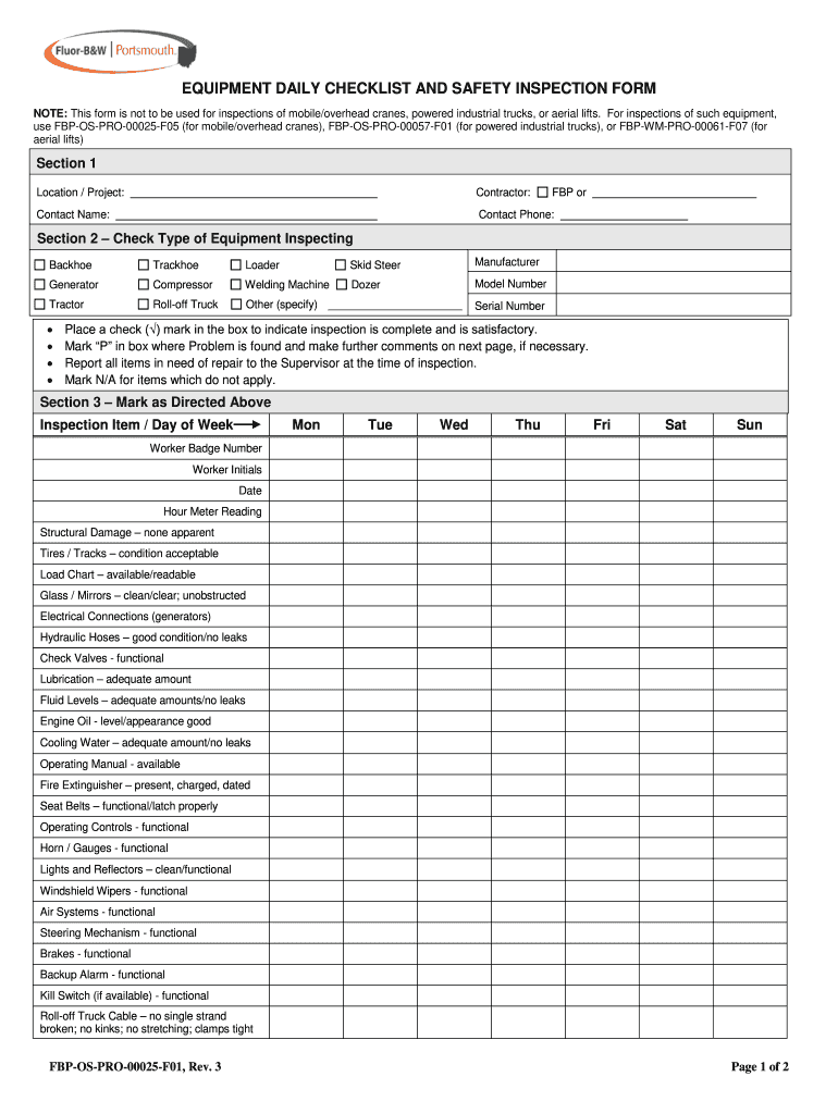Heavy Equipment Inspection Checklist Pdf Fill Online Printable Fillable Blank PdfFiller